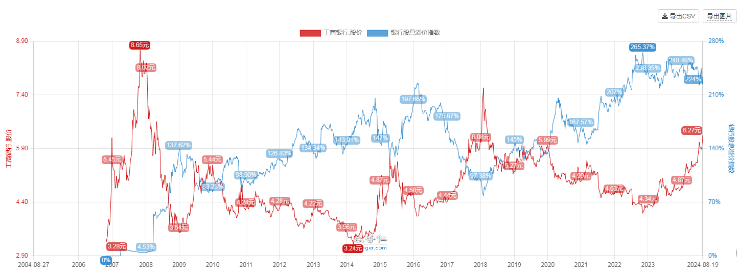 2022年底,各银行股连跌四年后,估值最低0.4-0.45pb时,这个比值是266%