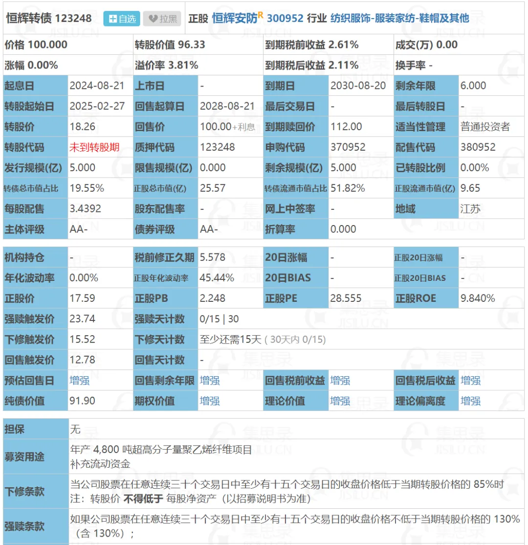 恒辉转债:(正股代码:300952,配债代码:380952)