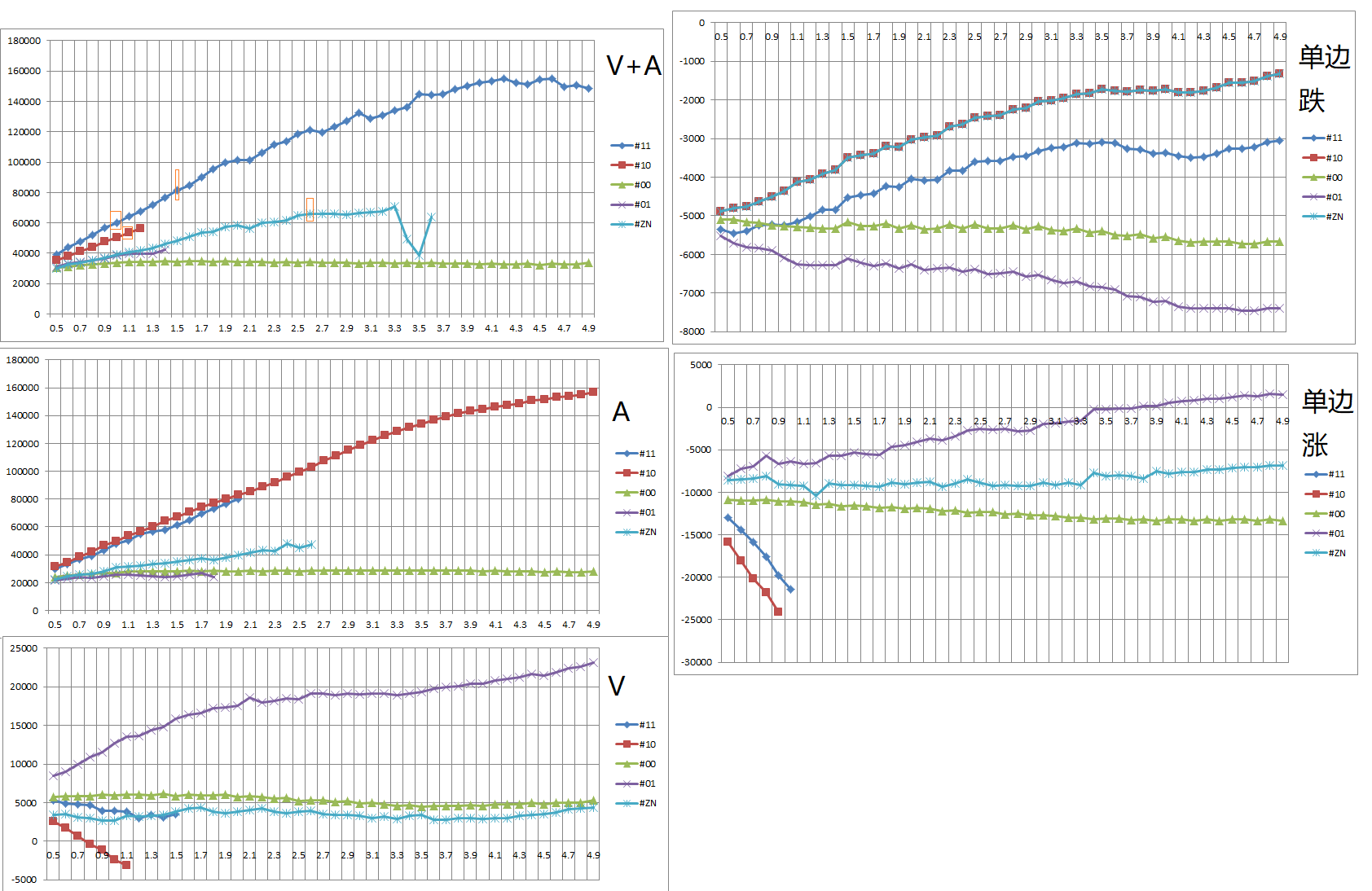 但就整体反馈来讲,整体来看似乎不如 机械的非判断的,买卖同时填充,但是,在单边下跌 与 上涨 时,这个感受真是好太多了,同时对dv的值允许比较大,但应该还存在改进空间