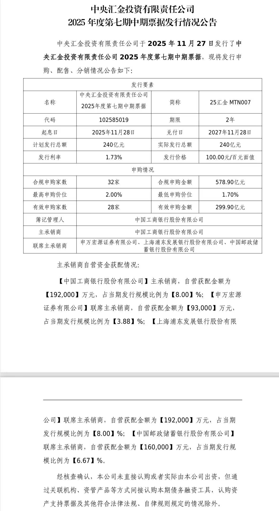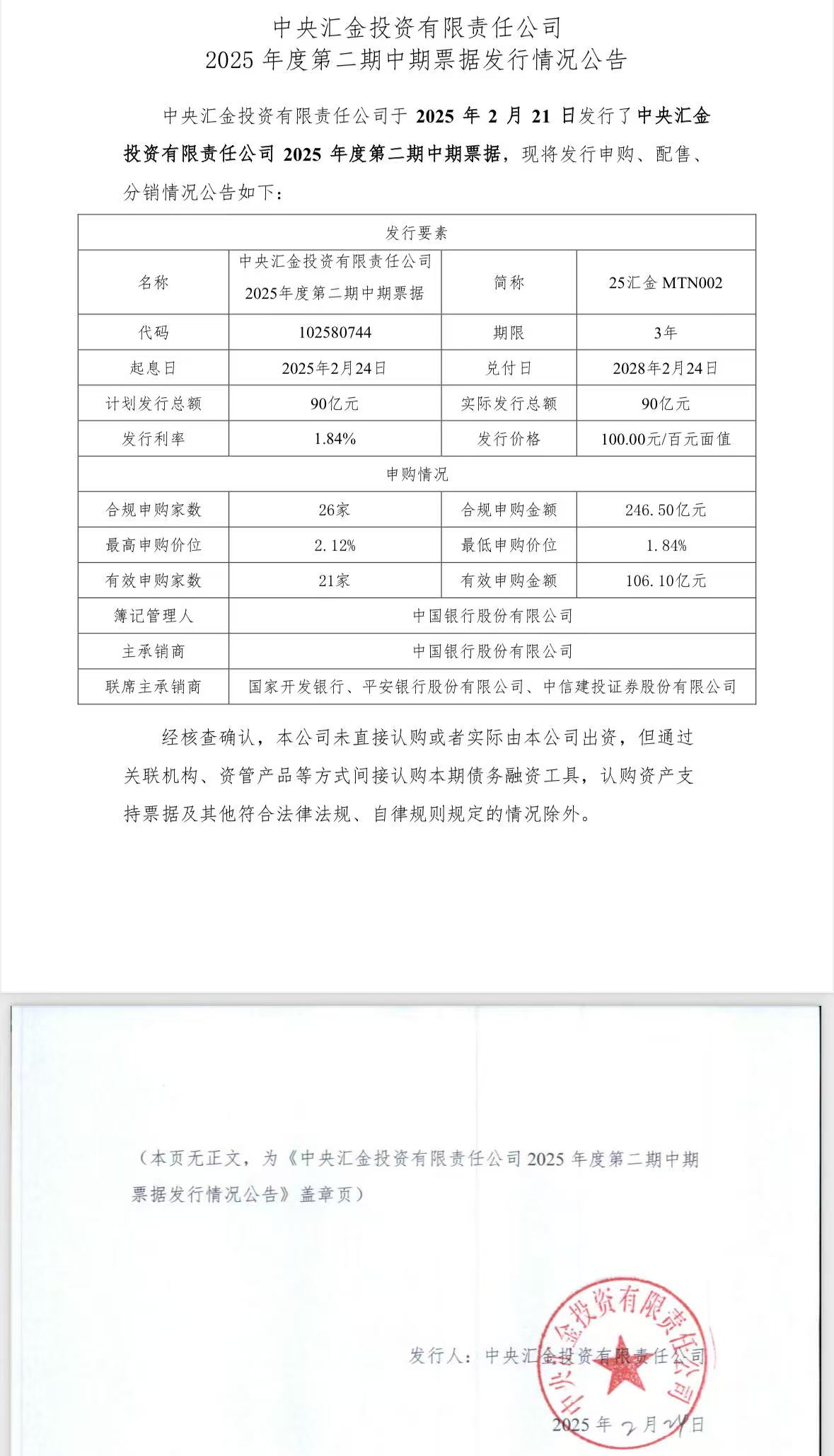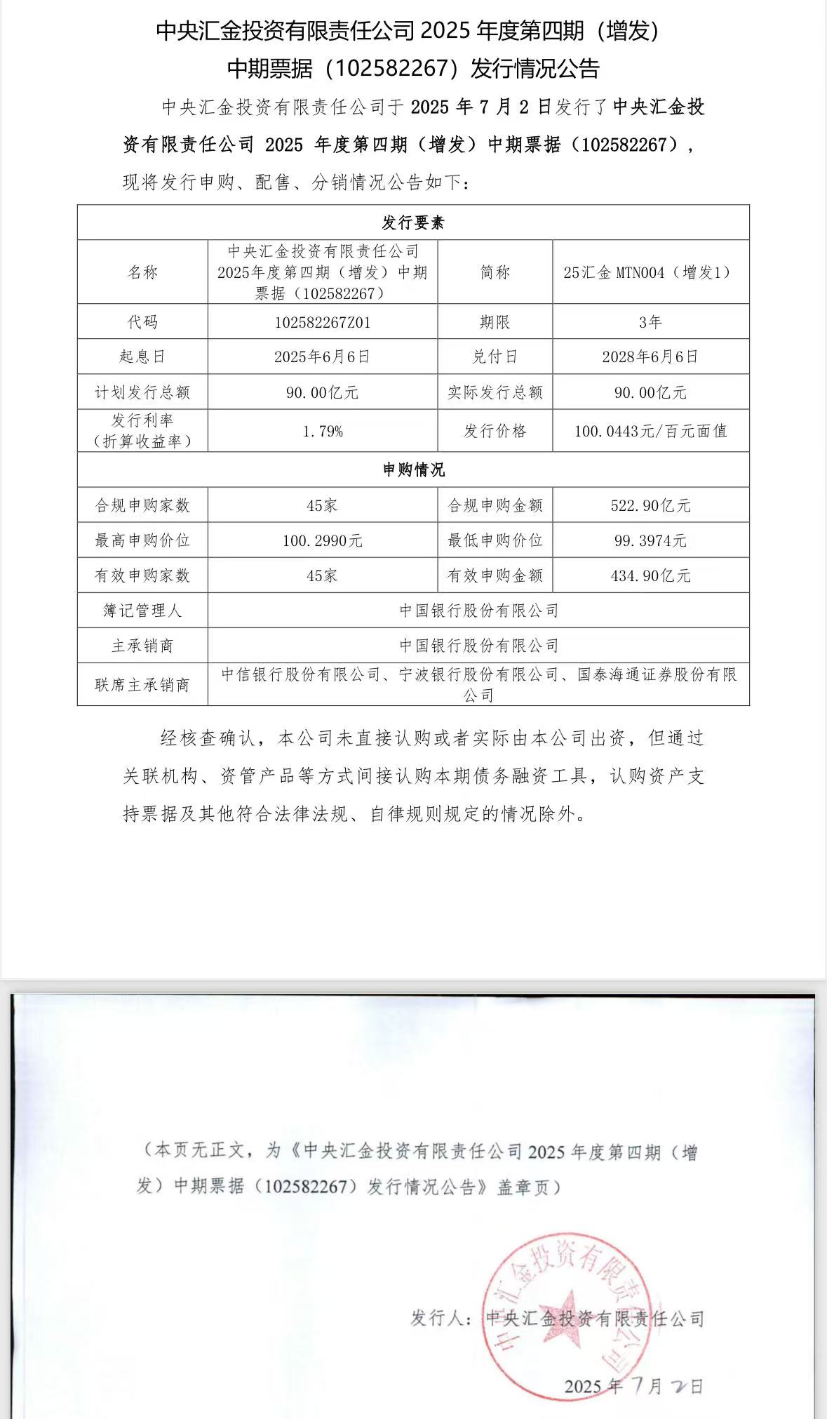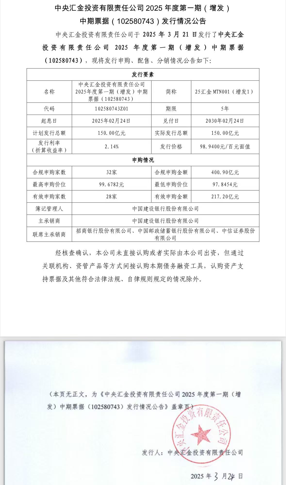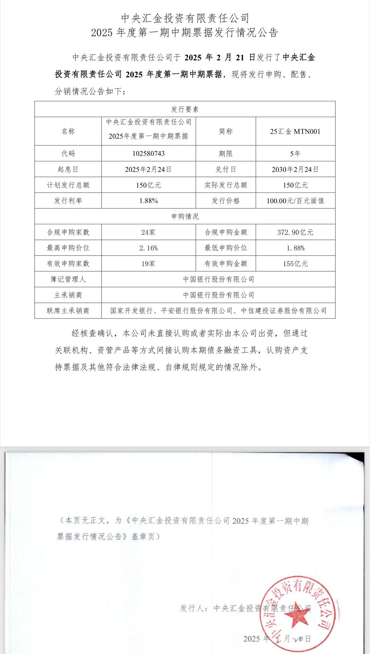 2024年9月4日,中央汇金发行2024年度第六期中期票据,规模90亿元,期限3年;同时发行2024年度第五期(增二)中期票据,规模150亿元,期限5年。今年累计发行1920亿元。130亿元中期票据将于9-11月到期。