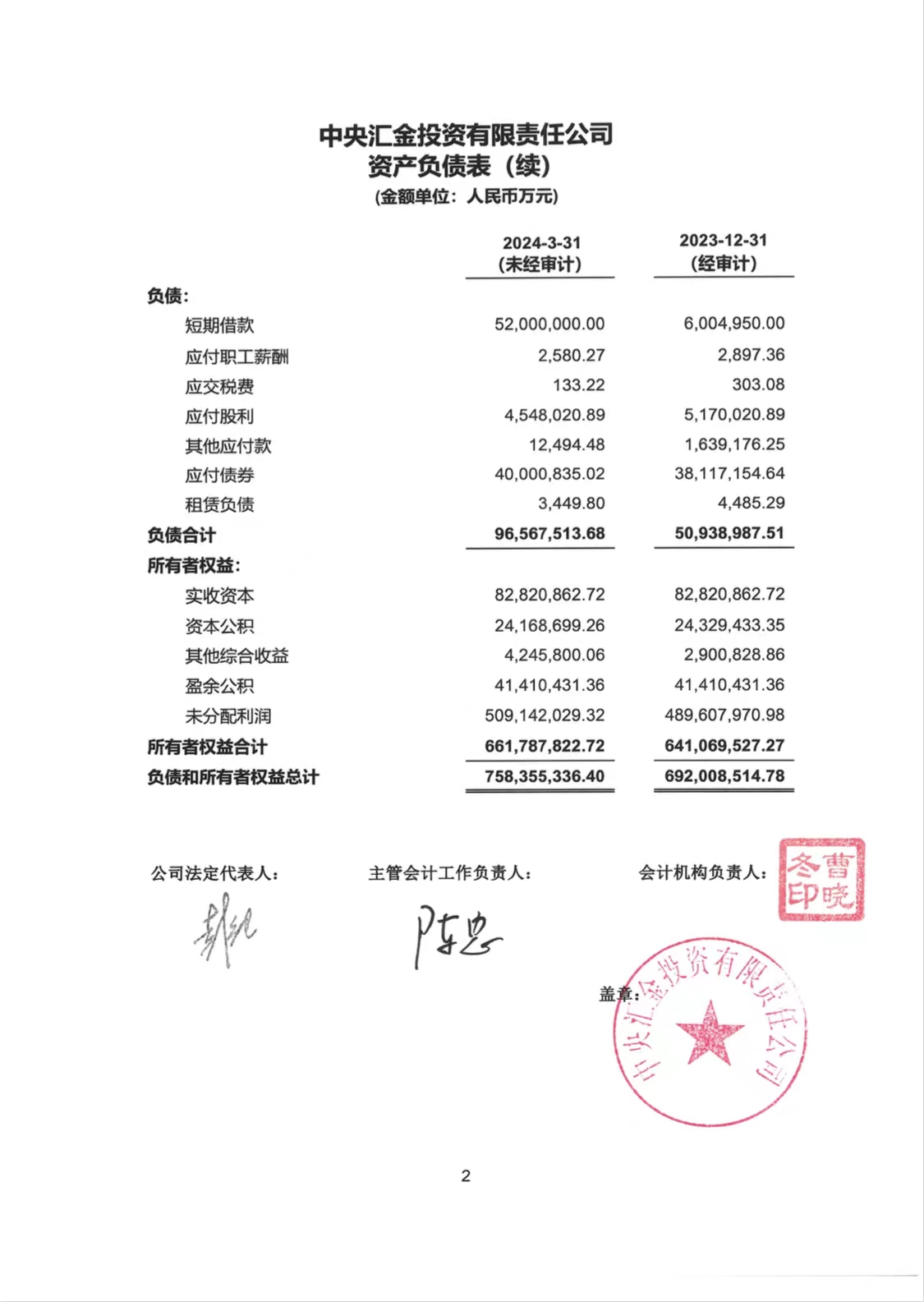 答:一是资产实力雄厚。作为国有金融资本受托管理机构,中央汇金公司经营稳健,资产负债表健康。