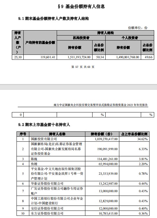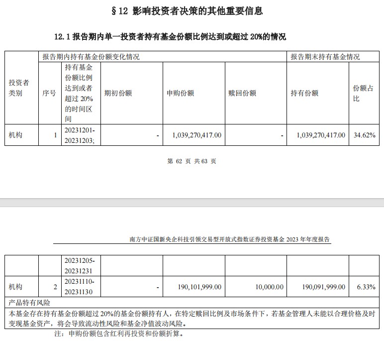 2023年12月1-3日,国新投资有限公司申购央企科技ETF10.39亿份。