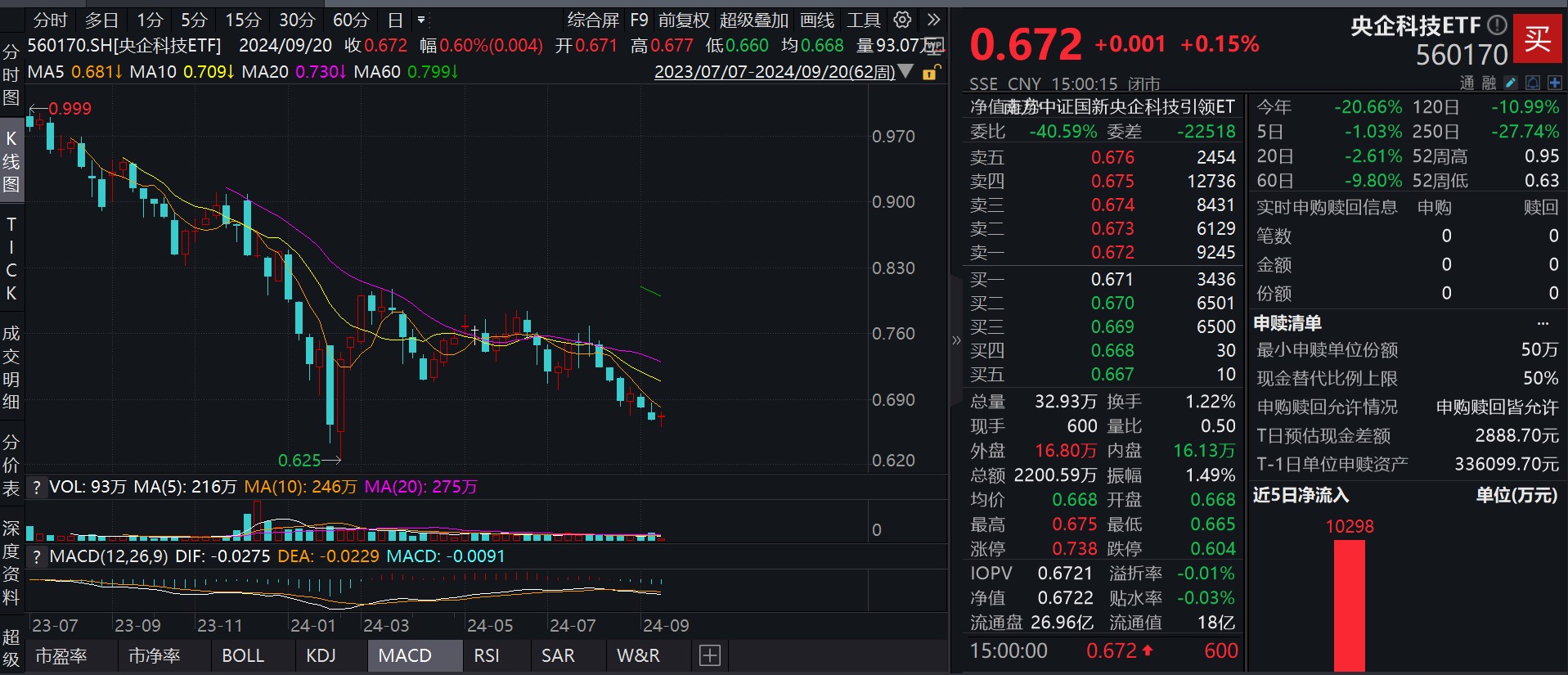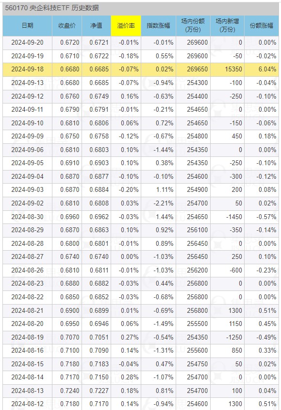 2024年9月18日,央企科技ETF份额新增1.54亿份。
