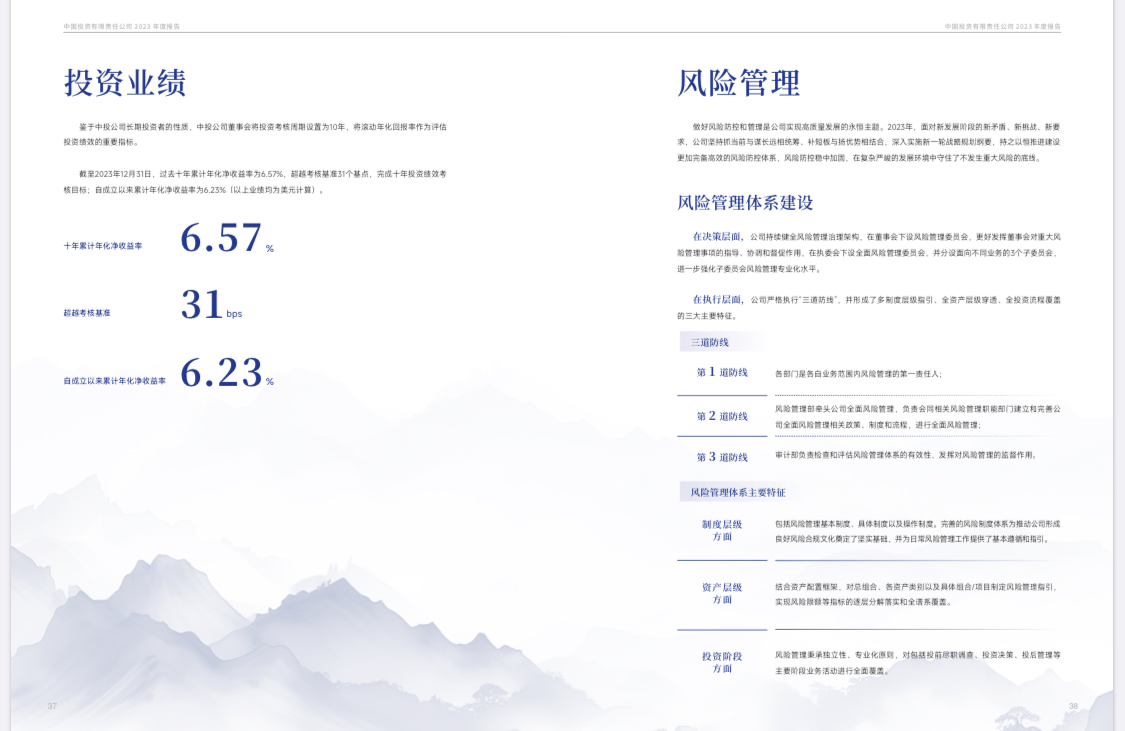 鉴于中投公司长期投资者的性质,中投公司董事会将投资考核周期设置为10年,将滚动年化回报率作为评估投资绩效的重要指标。