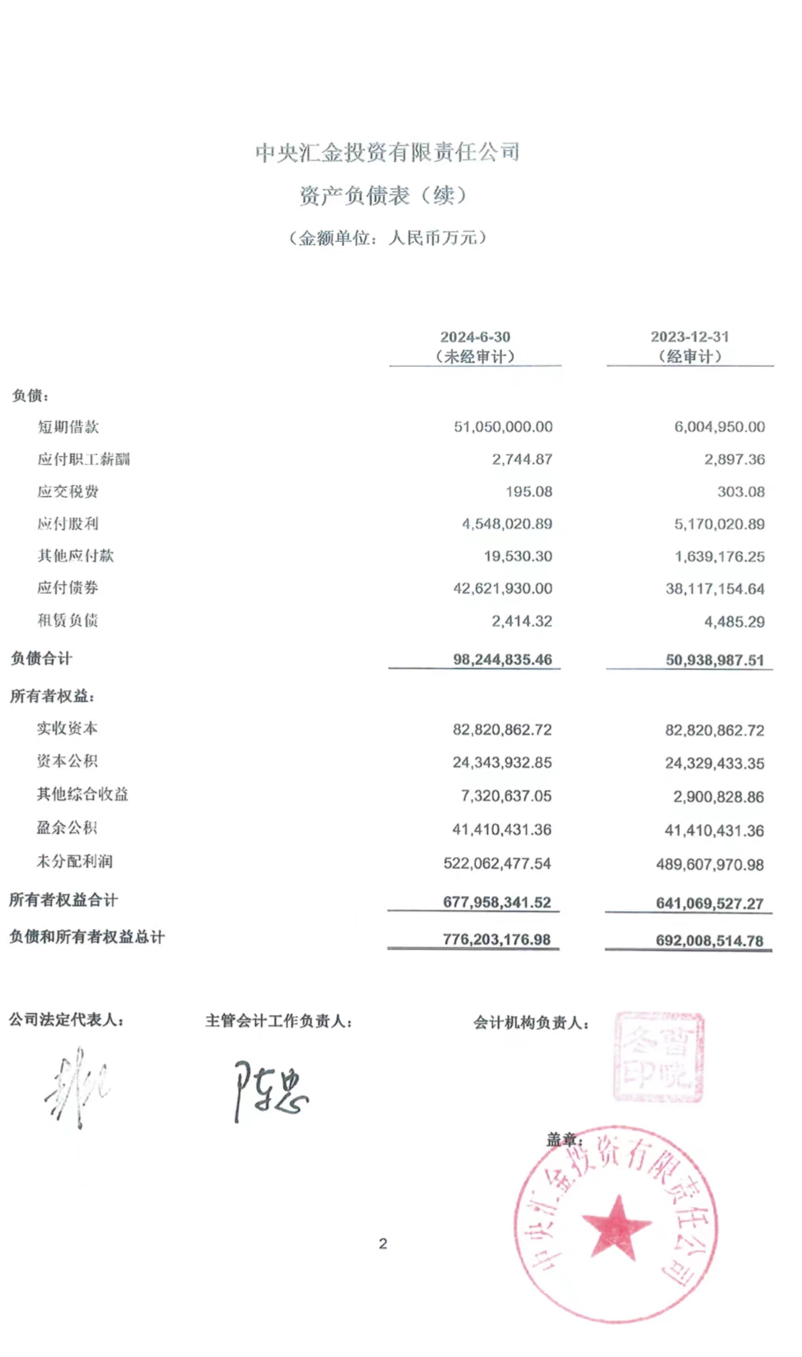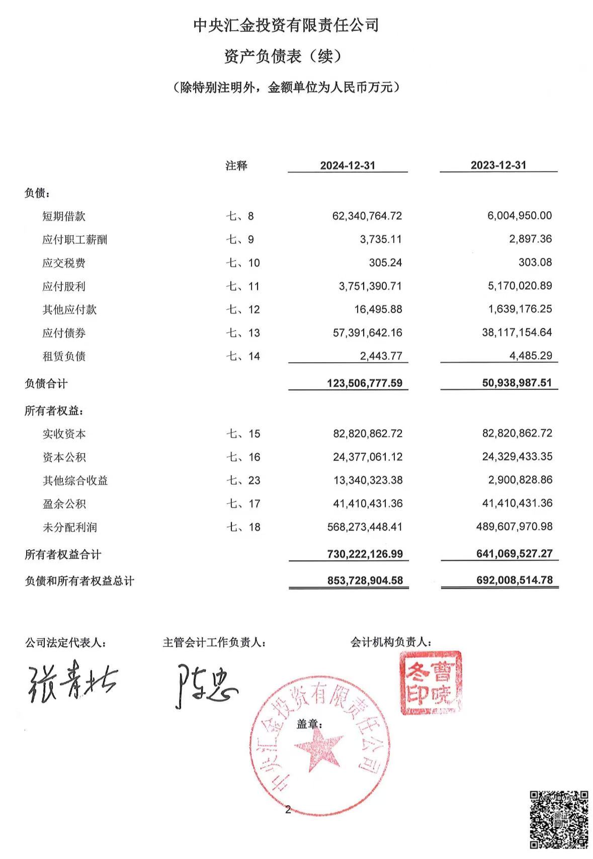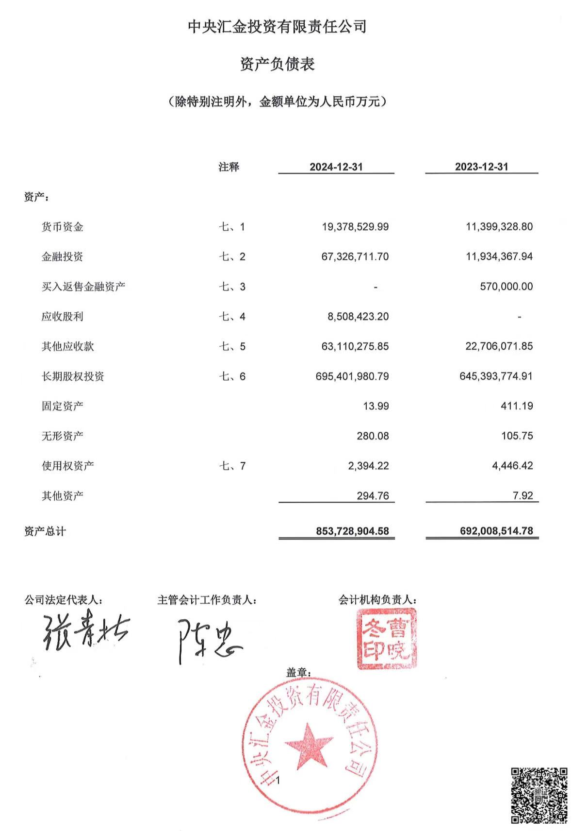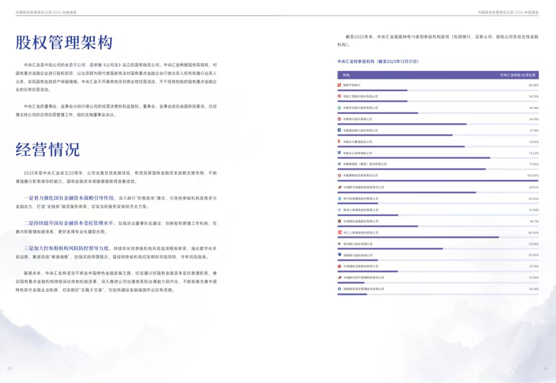 截至2023年底,中央汇金受托管理的国有金融资本为6.41万亿元人民币,较年初增长9.4%。中央汇金是中投公司的全资子公司。