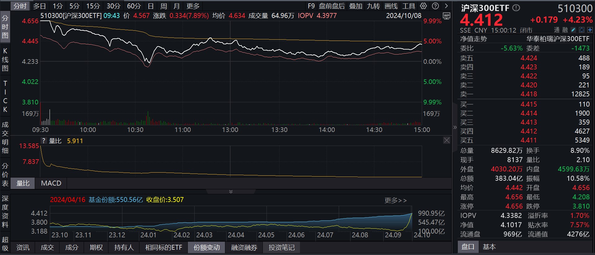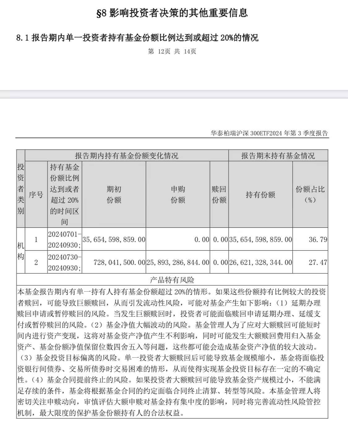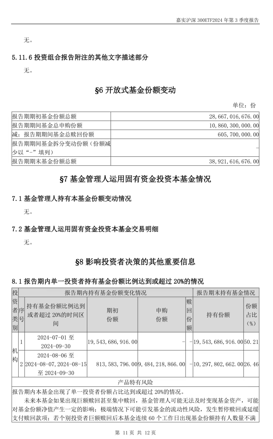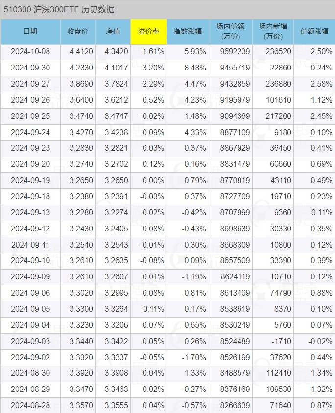 2024年9月24日,华泰柏瑞沪深300ETF份额909.44亿份,规模3113.73亿元,首次突破3千亿元。