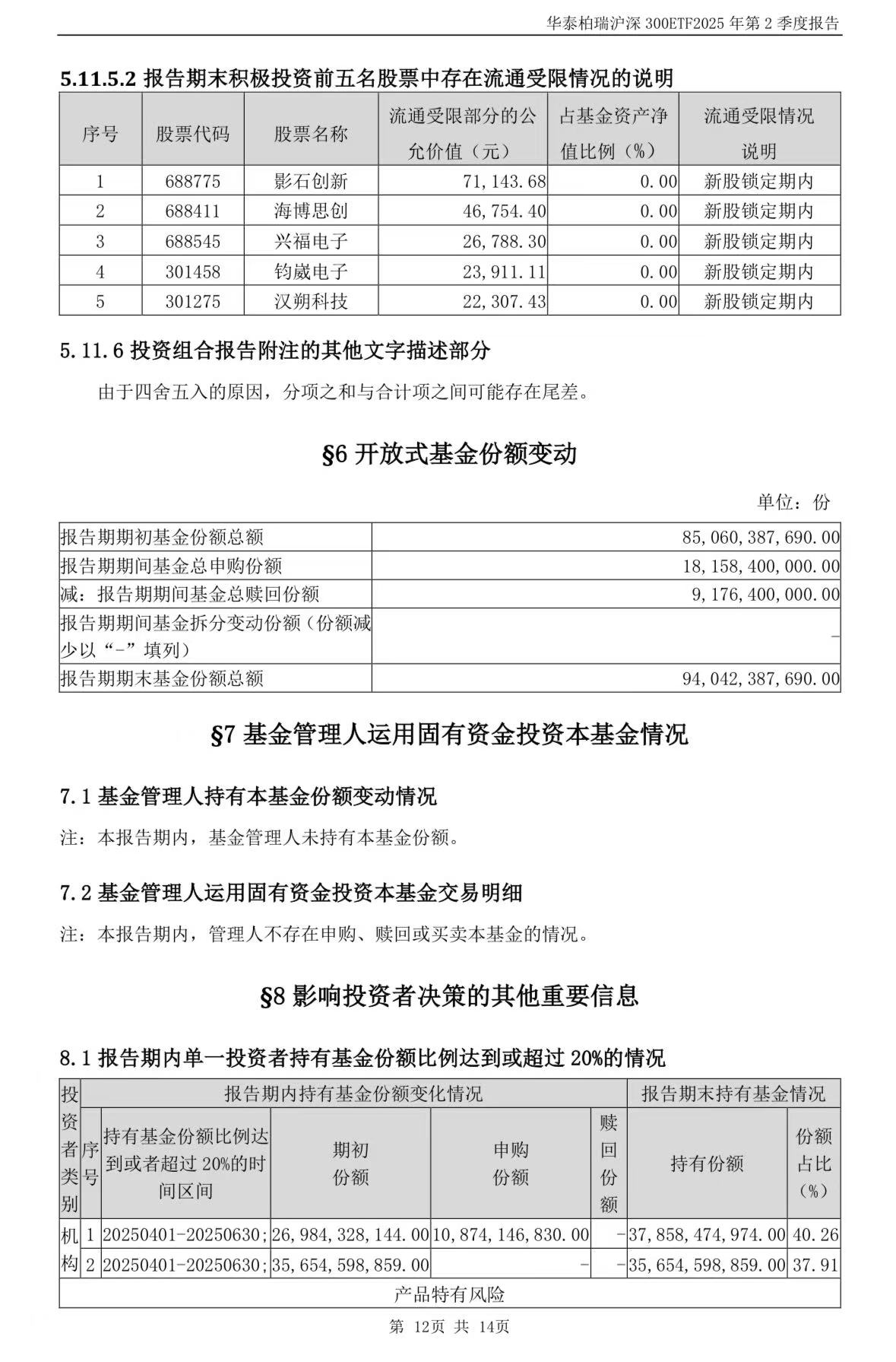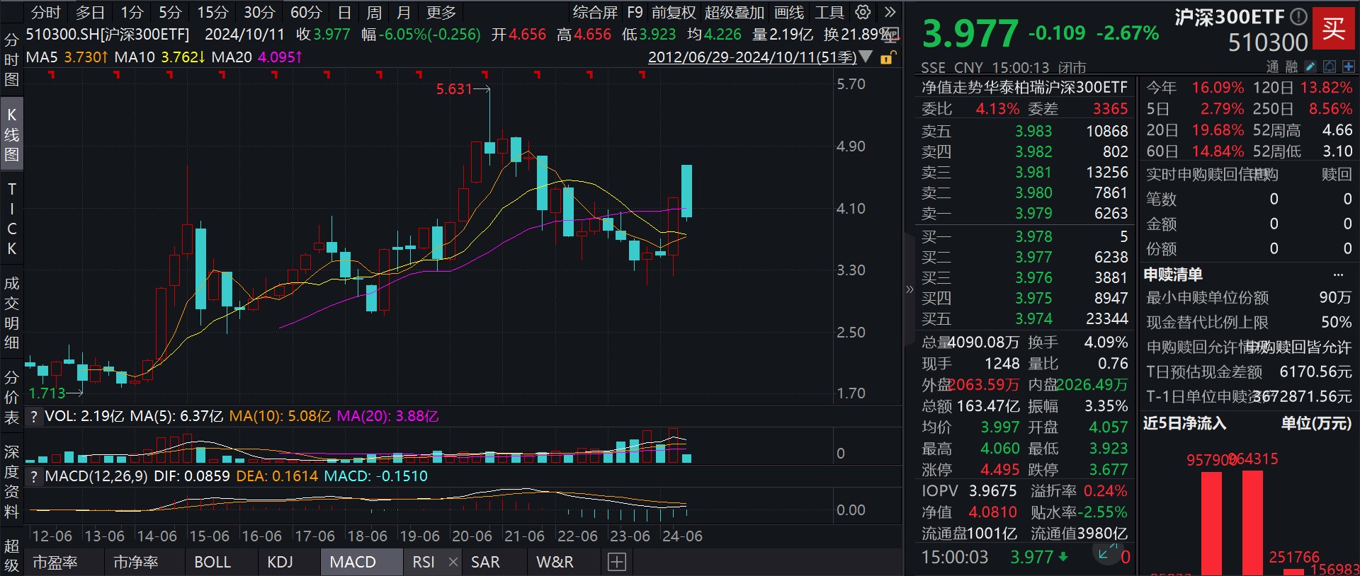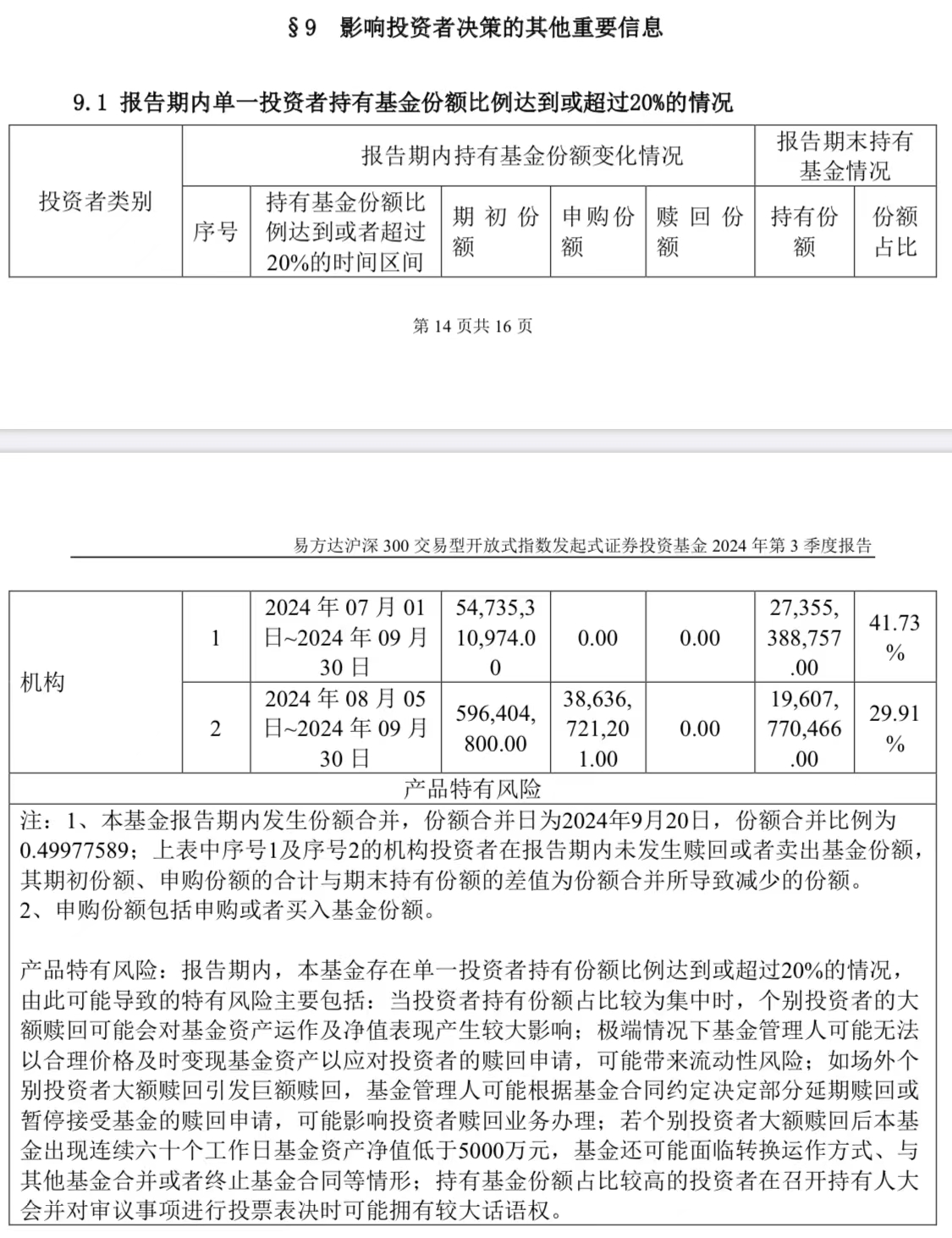 2024年9月24日,华泰柏瑞沪深300ETF份额909.44亿份,规模3113.73亿元,首次突破3千亿元。