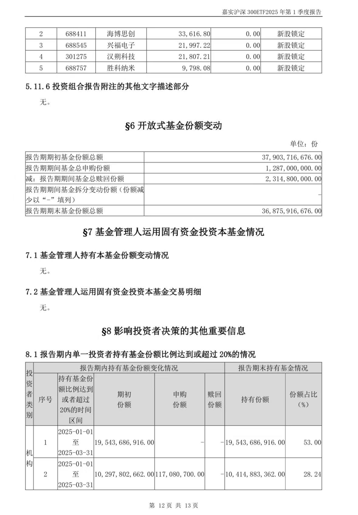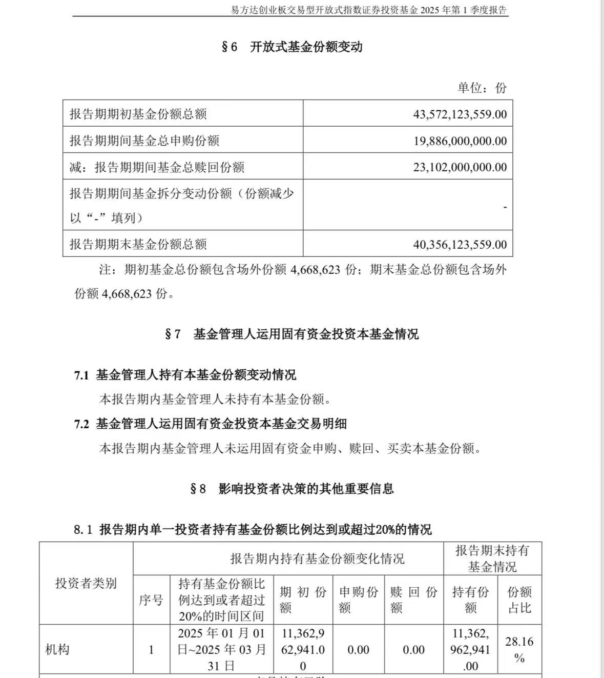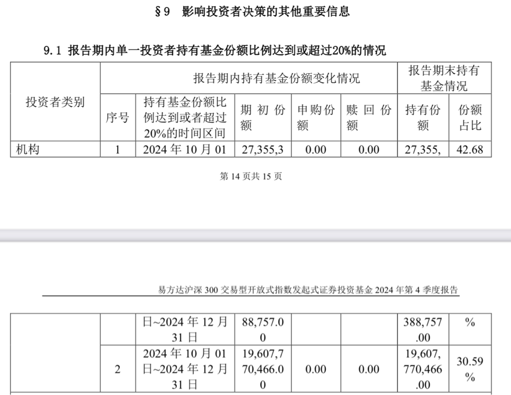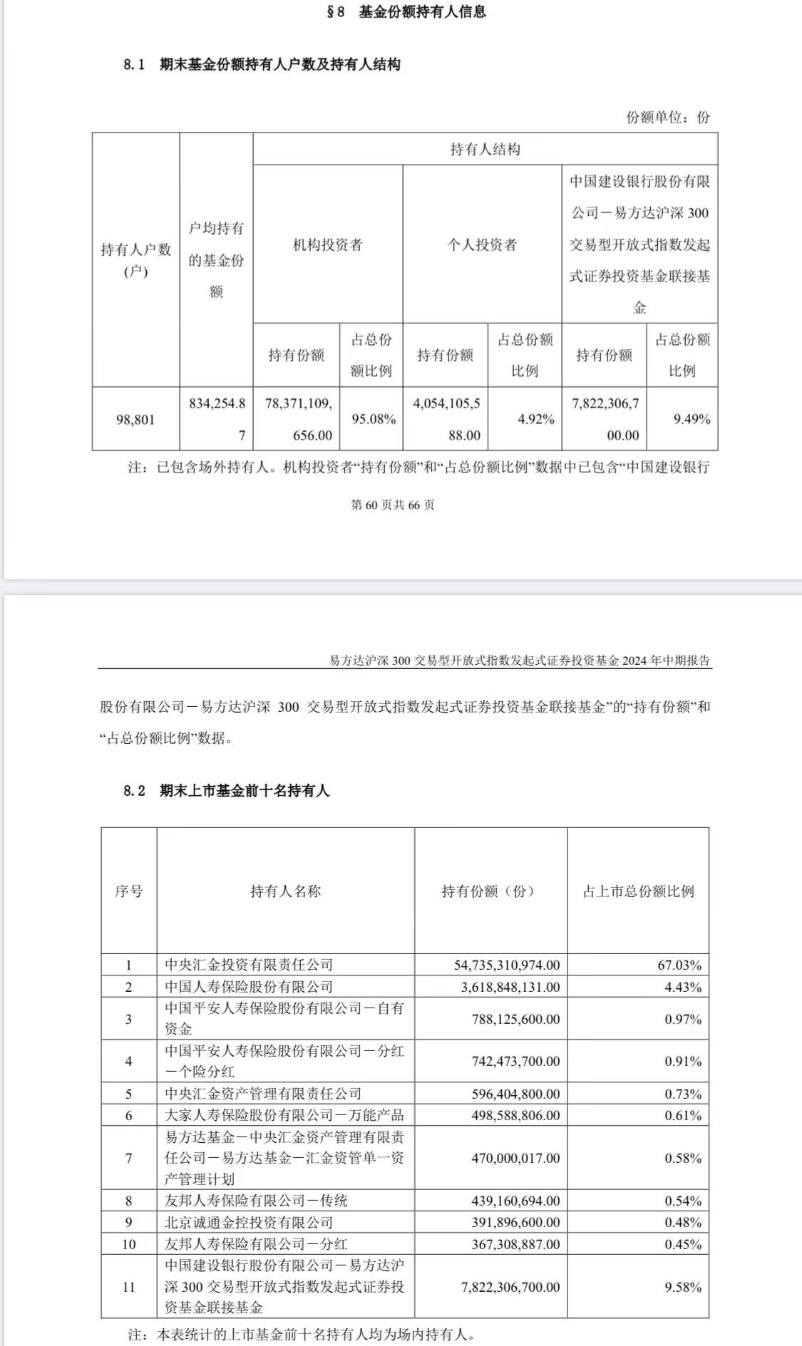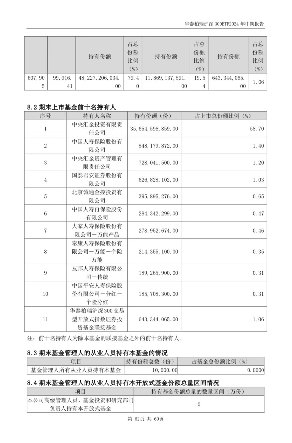 2024年一季度,华泰柏瑞沪深300ETF份额新增178.85亿份,中央汇金申购263.56亿份华泰柏瑞沪深300ETF,其他投资者赎回84.71亿份华泰柏瑞沪深300ETF。