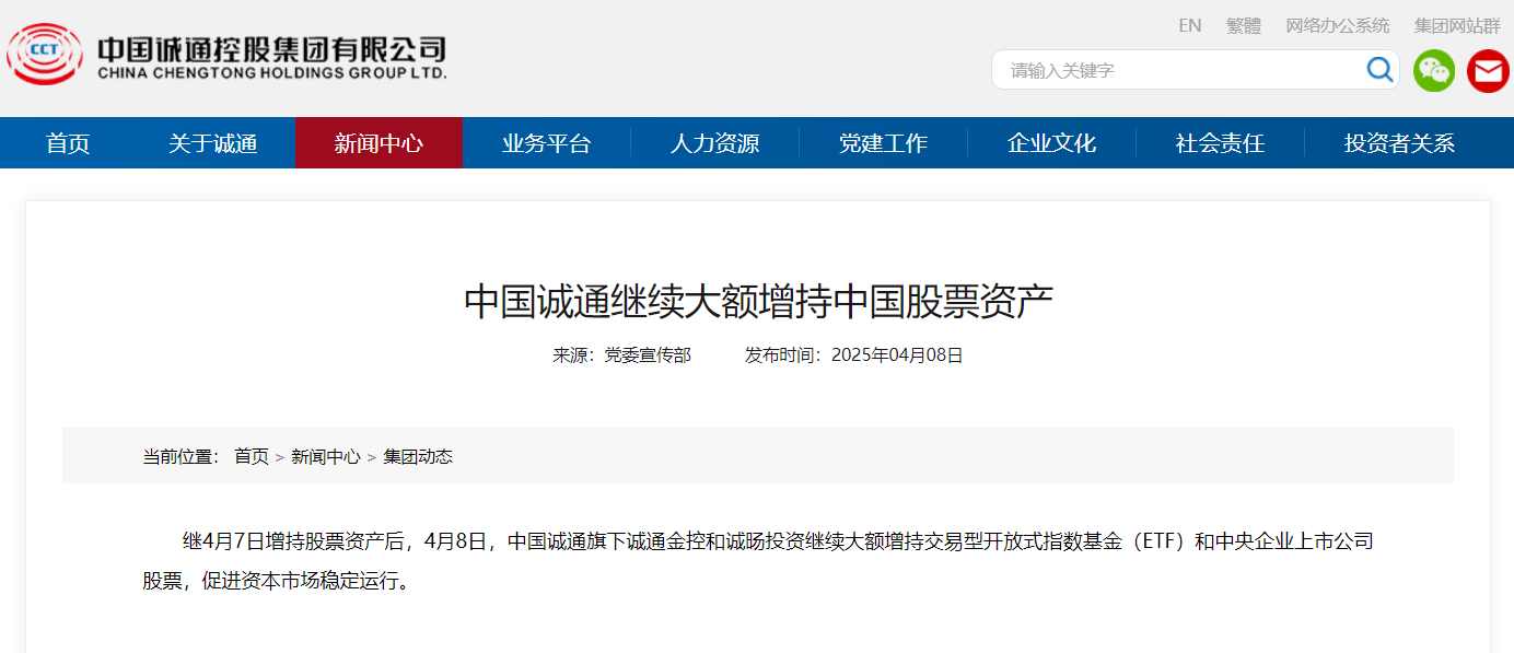 中央汇金公司坚定看好中国资本市场发展前景,充分认可当前A股配置价值,已再次增持了交易型开放式指数基金(ETF),未来将继续增持,坚决维护资本市场平稳运行。