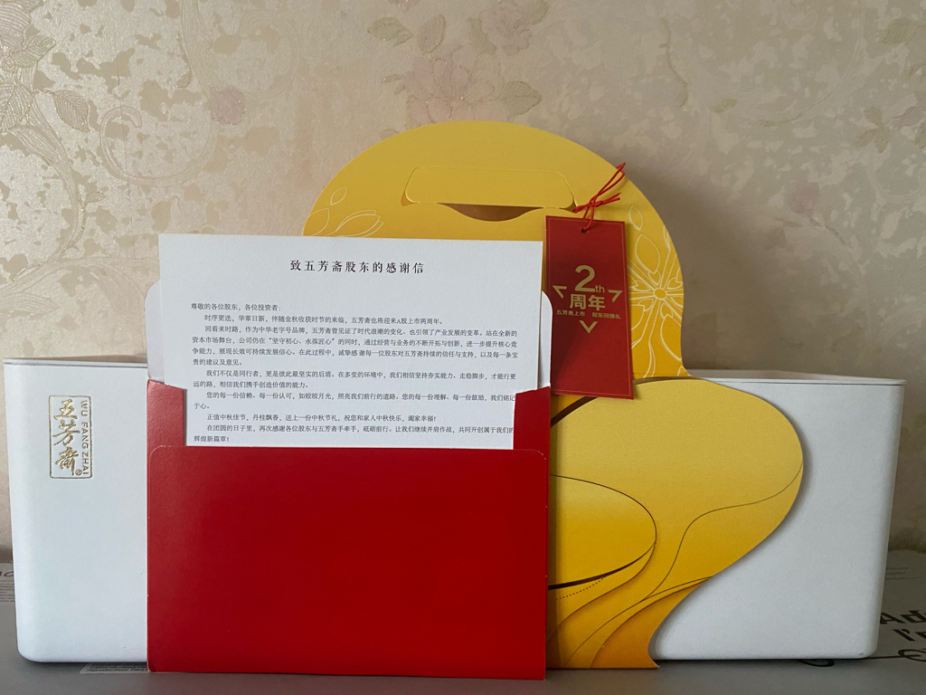 五芳斋发给股东的月饼到了