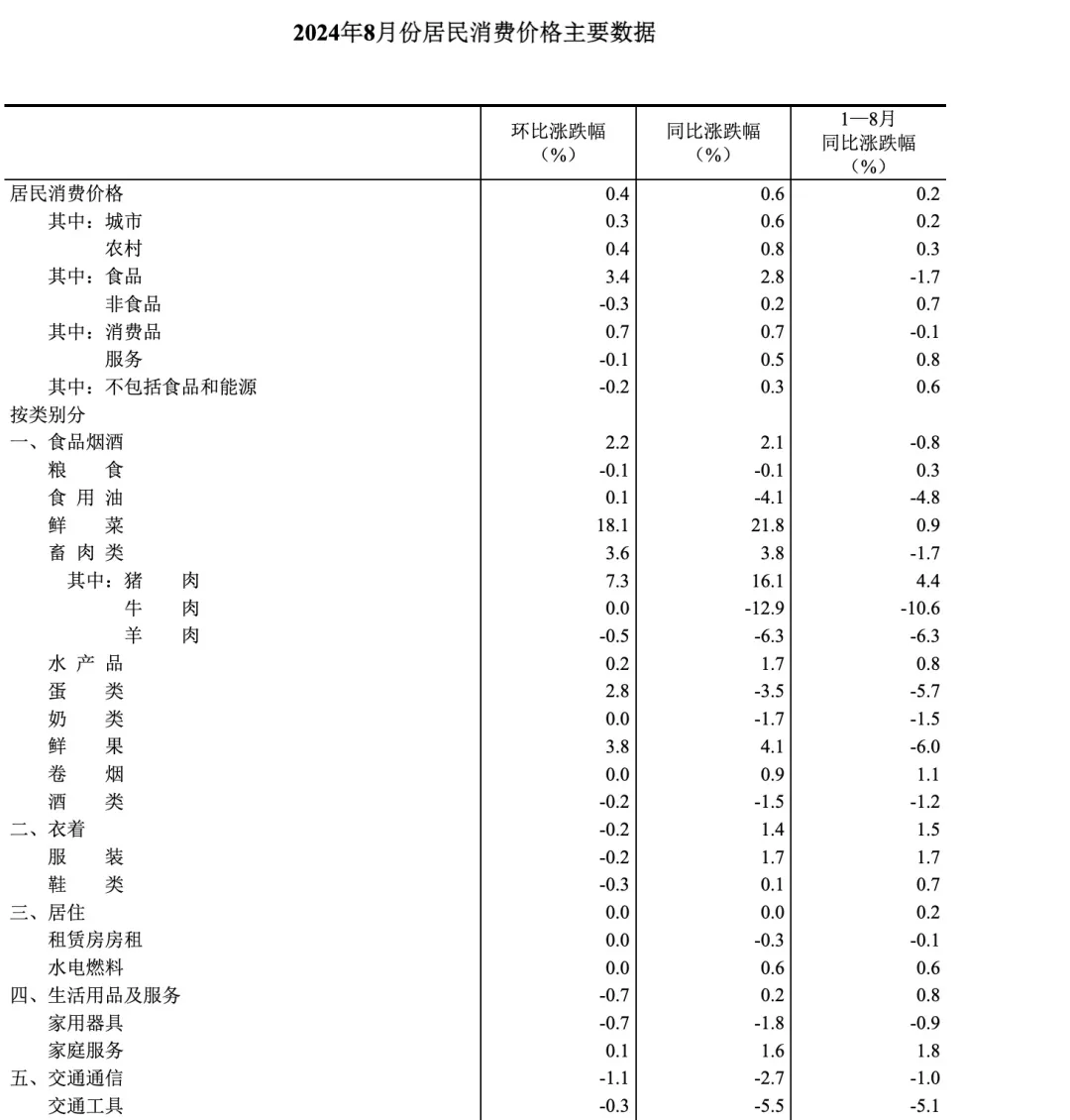 统计局也刚发了8月的cpi数据,同比上涨了0.6%,环比涨0.4%,感觉又涨了一丢丢。