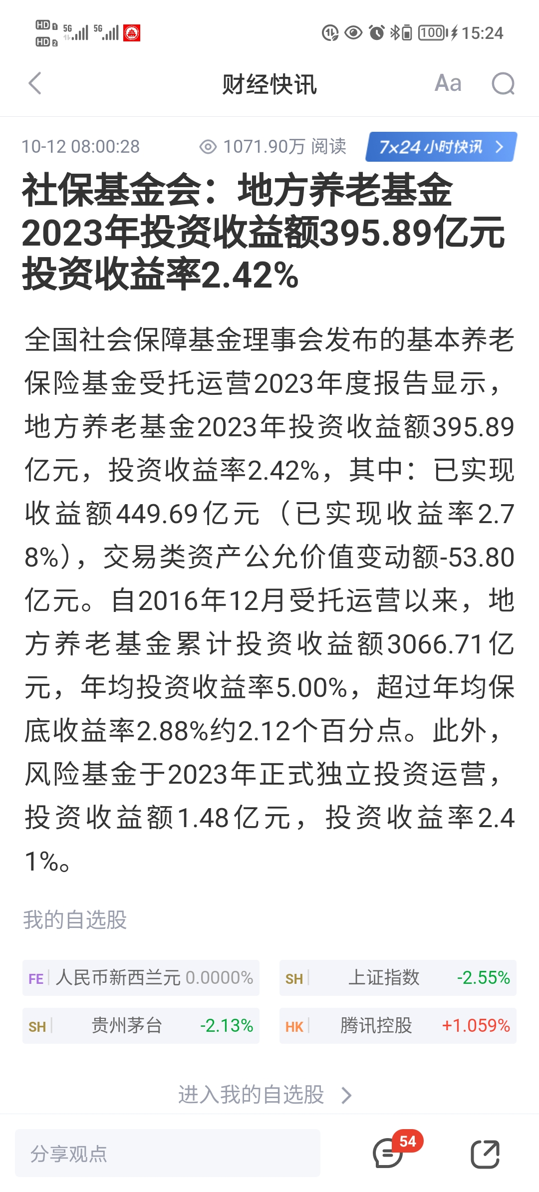 社会保障基金2023年投资收益率为0.96%,预测收益率最接近、时间最早的获得本次猜测奖励