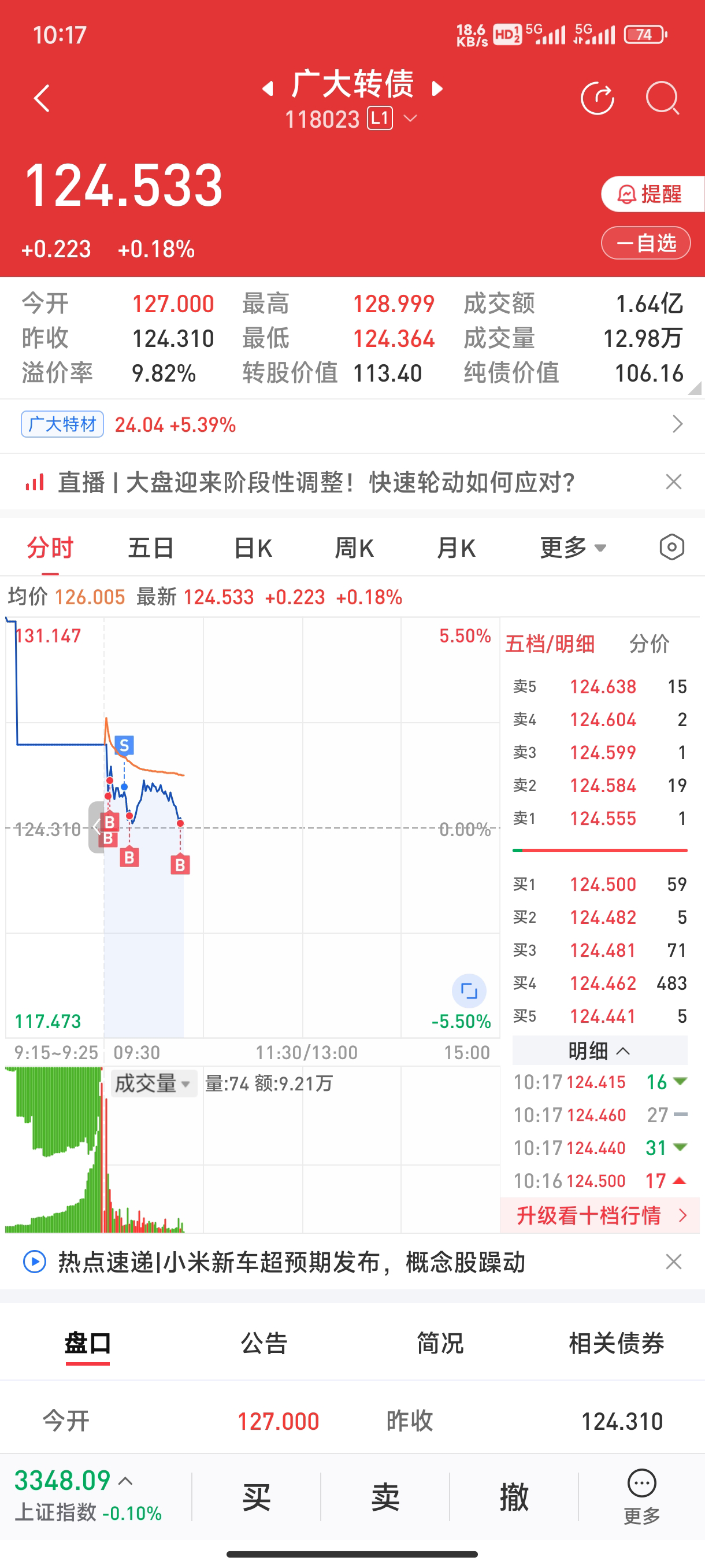 广大是不是捡钱,转债价格没动,正股涨5个多点
