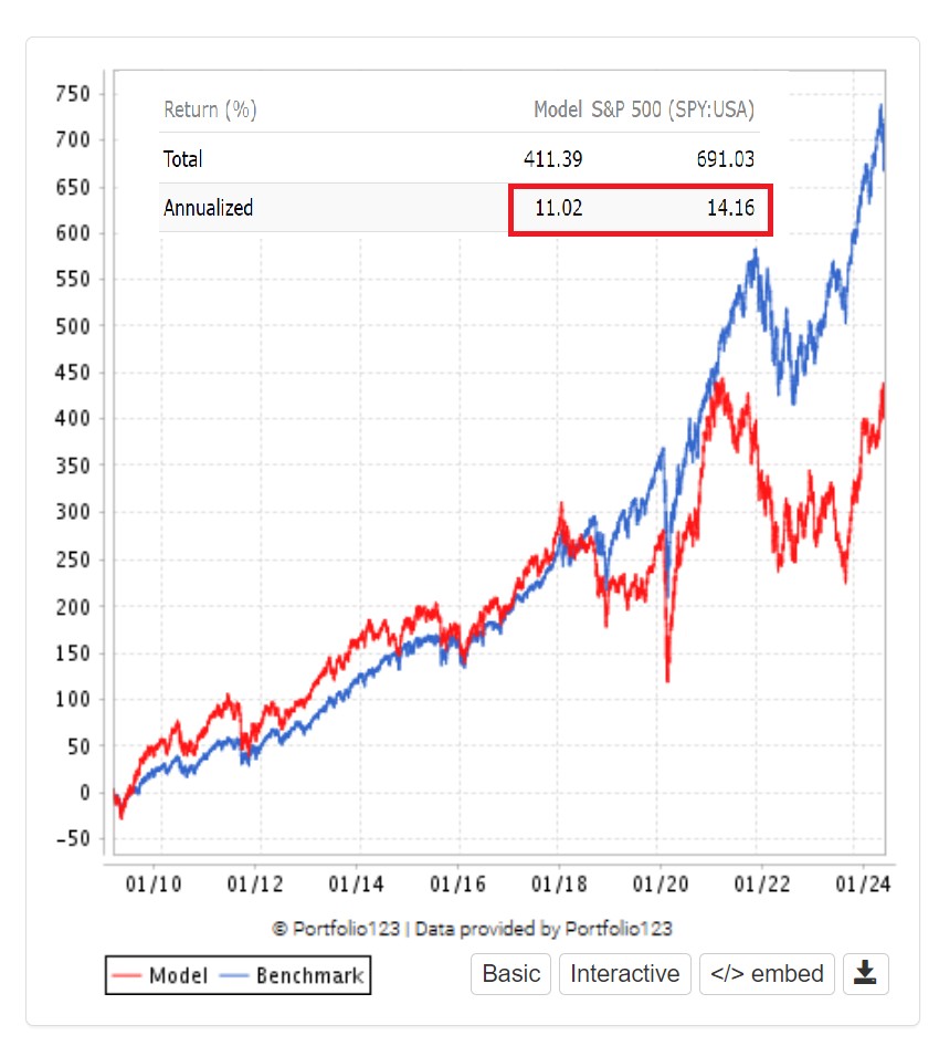 在果仁上,也提供排名系统和业绩回测,总体上两者是区别不大的;但是,在Portfolio123上,这两个之间似乎存在很大的差距。