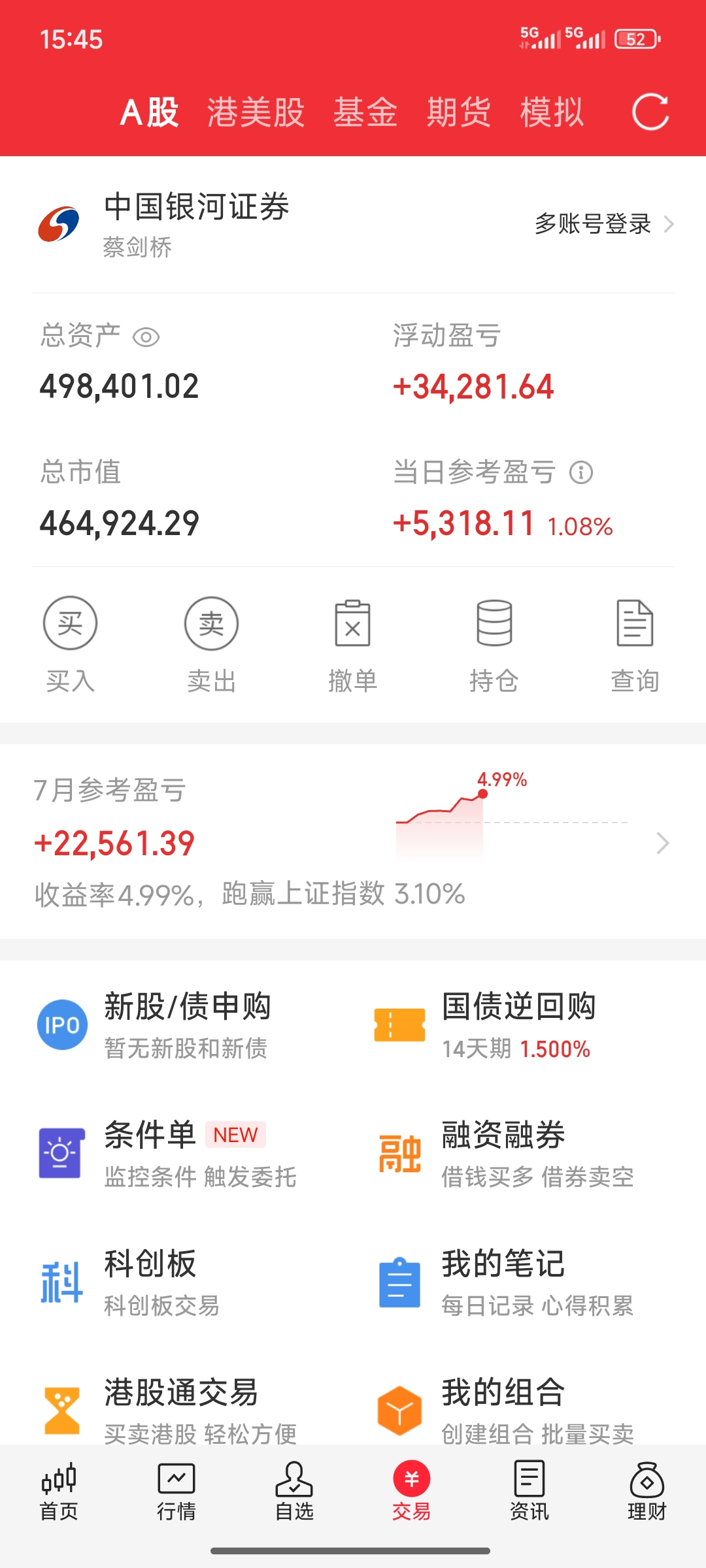 终于收盘了。今天被双良转债和美锦转债暴击了。所有指数均大涨,我的账户勉强不绿。微盈几百块。满仓踏空比套牢还痛苦。看来坚定持有,也不是一件简单的事情。光伏今年也就这样了?双良转债还能有更好的表现吗?