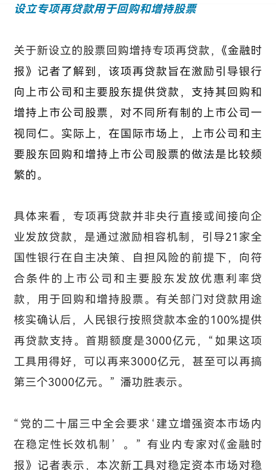 创设股票回购增持专项再贷款,引导银行向上市公司贷款支持回购和增持股票。