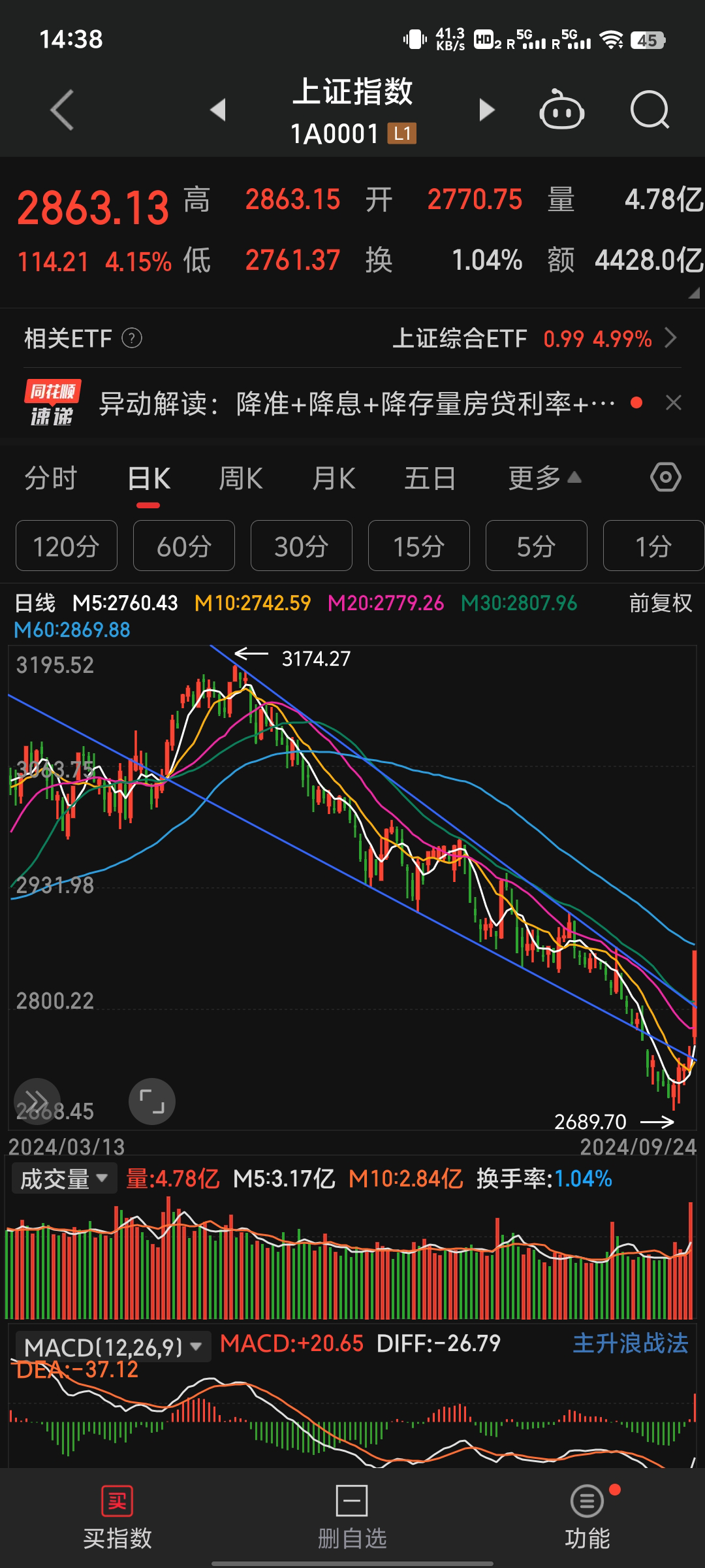 今天我已经减了一些仓位。很难相信几个政策就能逆转投资者信心。