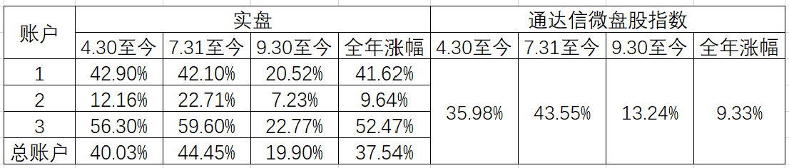 从实盘细分账户看:从用于观察和策略试验的组合看: