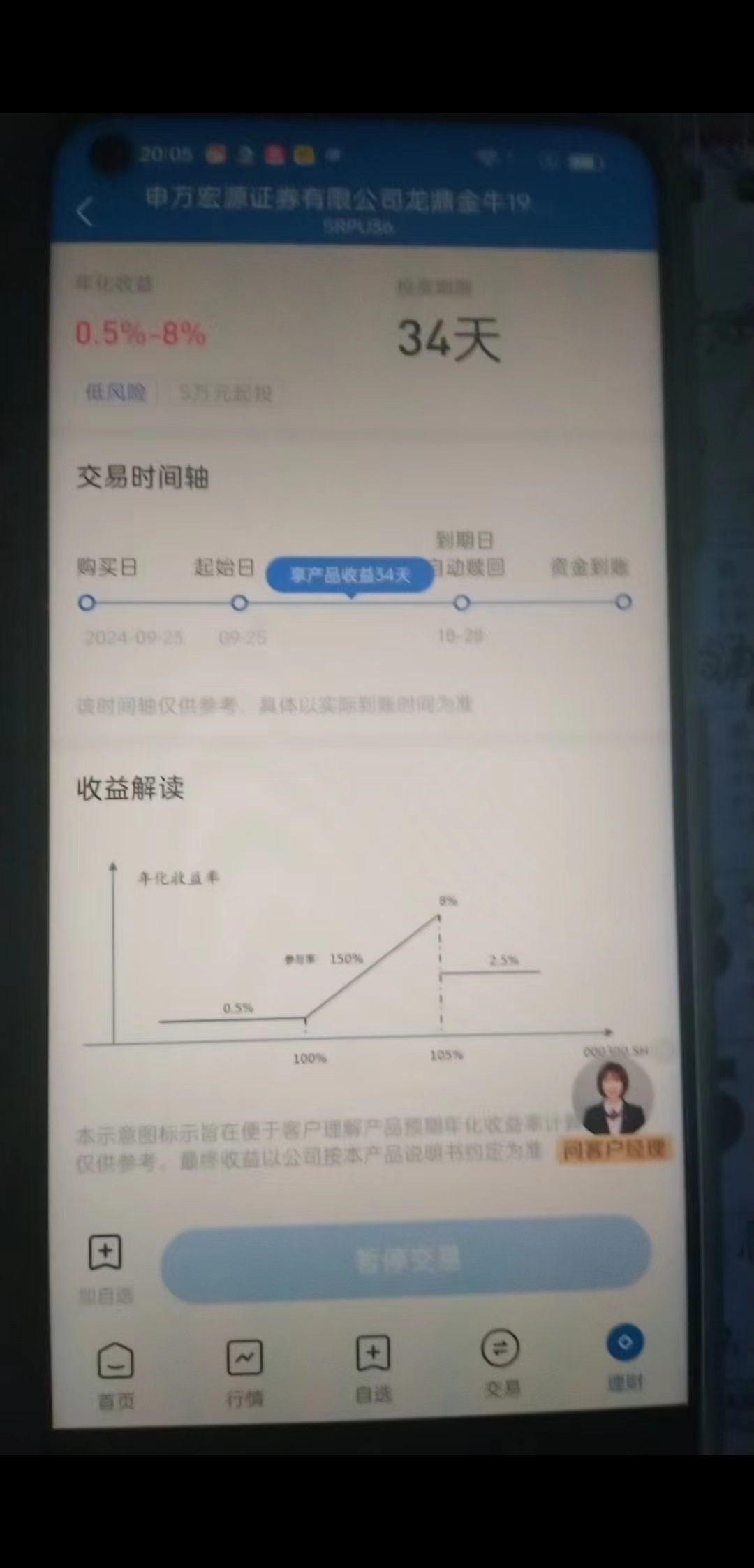 标的不涨,按年化0.5%结算;标的涨幅大于5%,按照年化2.5%结算;标的涨幅在0~5%之间,收益按线性方法计算出来。敲出观察估计是按日观察的,楼主这个很明显,标的涨幅大于5%,所以按照年化2.5%计算;持有天数9.25~9.30仅五天,所以收益率大约为:2.5%*5/365=0.034%。