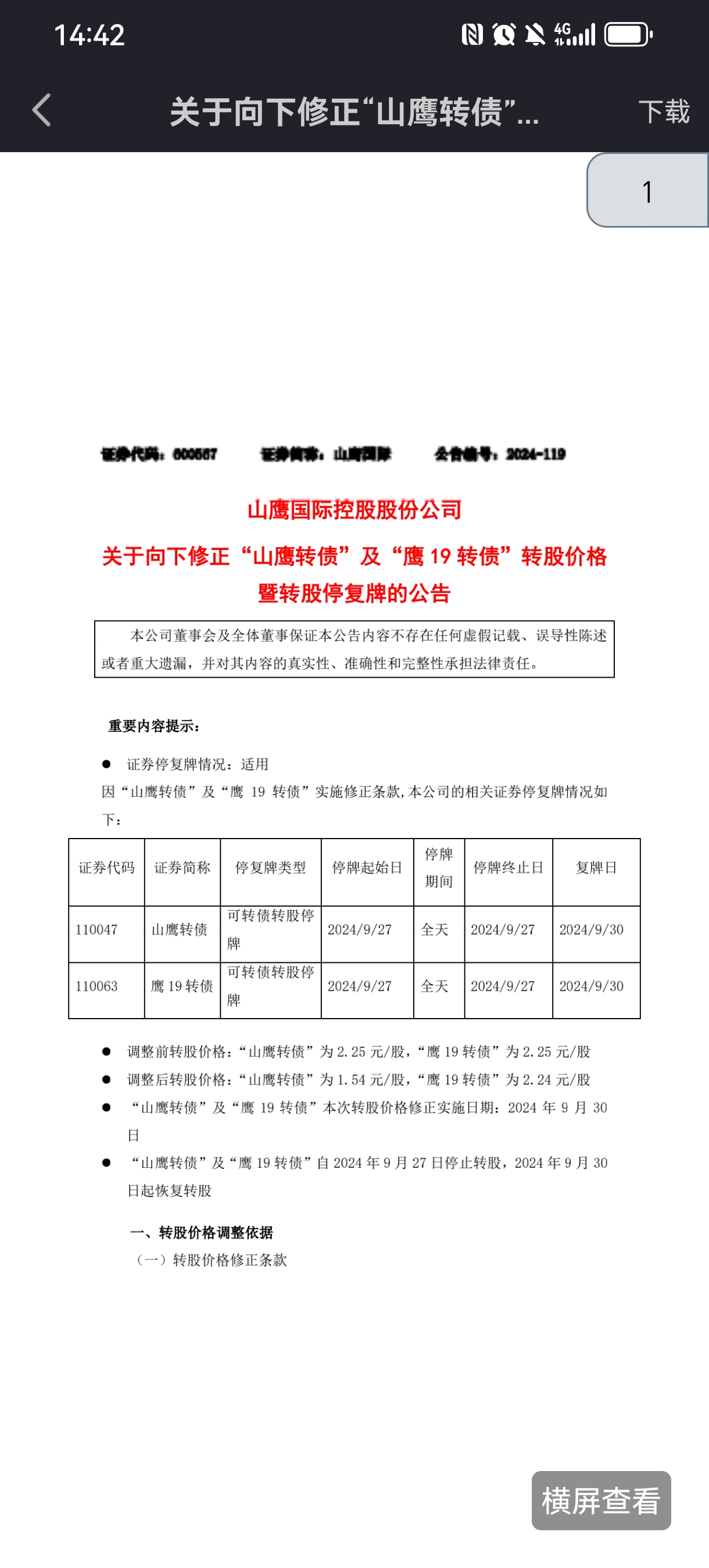 多多少少也没有,因为9月27日山鹰转债和鹰19都停止转股一天。
