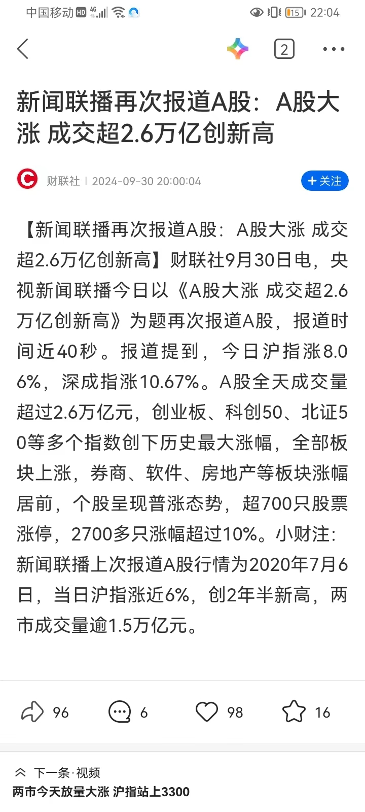 连续大涨后,看着今天大盘这个涨幅,我又沉默了,说不出话来