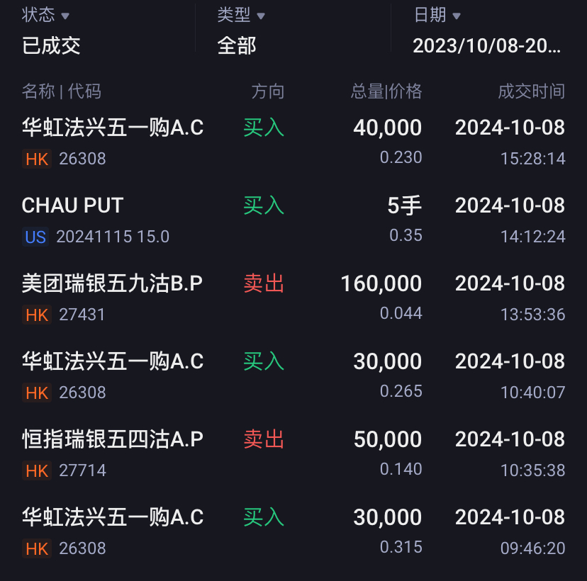 买了恒生科技和美团的认沽,买了华虹的认购,出了阿里的认购(街货比太高。标的不行),上了2878