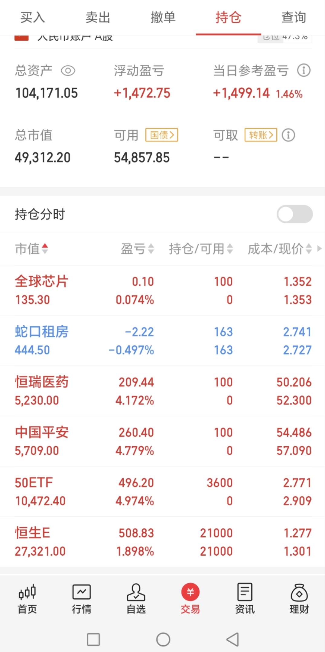 狗ri的创业板etf开盘没有给机会,我的原计划是买入几万创50的,之后回调我以为还会继续回调也没买,然后买了其他的,如图所示,下周国庆节如果来个回调,亏钱的风险很大唉,做好亏钱的准备吧。钱是从某某地方拿来的10多个w。