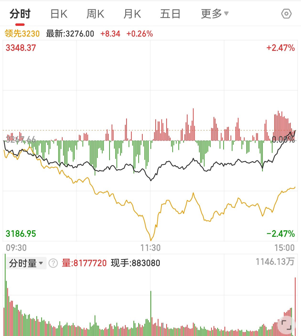 2 之前预测大盘短期大幅度回调(回到3300)的可能性并不高,但今天大盘果断开始了大幅回调,并且大幅跌破了3300,也就是低于9月30日的收盘点位。大家一起回到了国庆前,新老股民终于站在了同一条起跑线上。