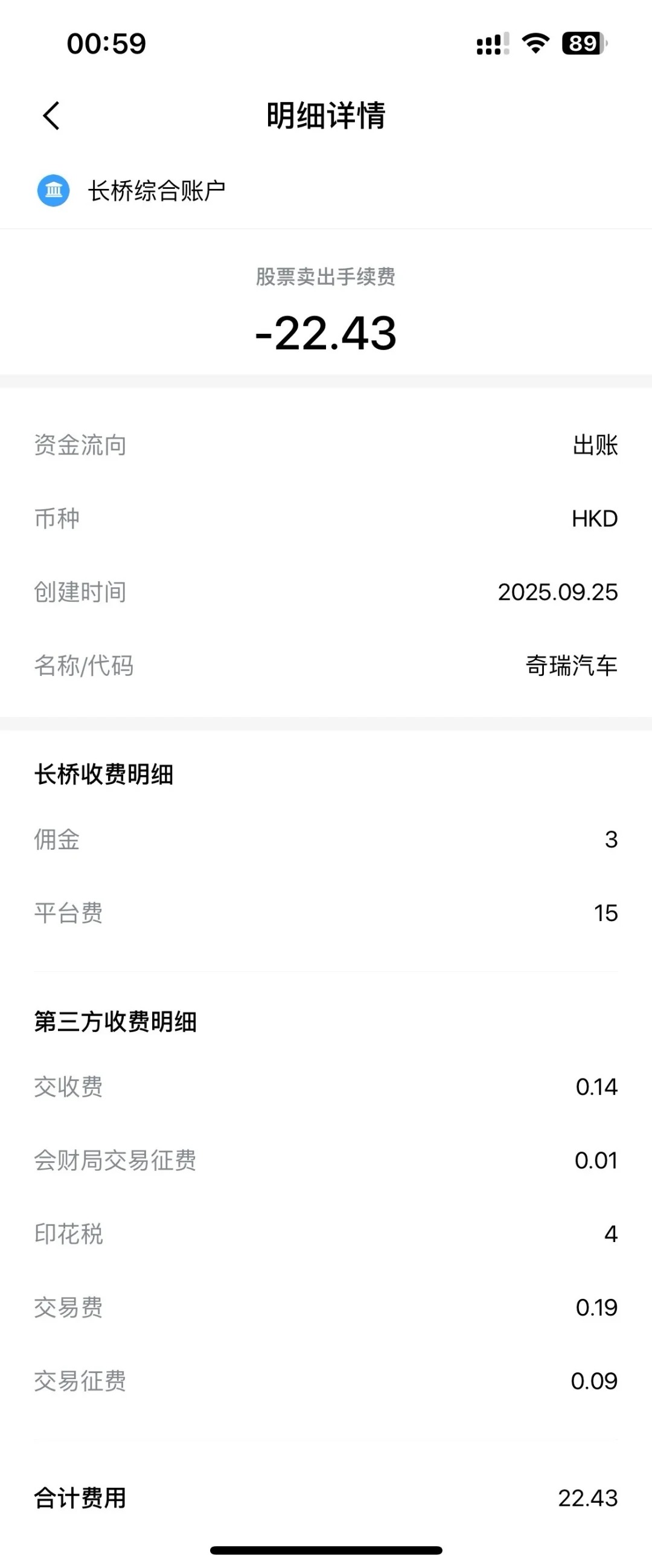 暗盘卖出成交金额为3372HKD,股票卖出手续费为22.43HKD;
