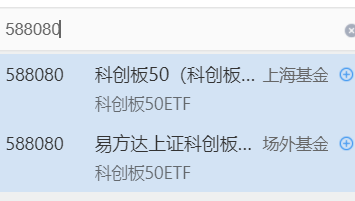 588080科创板50基金有两个,一个上海权证,一个开放式基金。(其它ETF好像也有类似的)