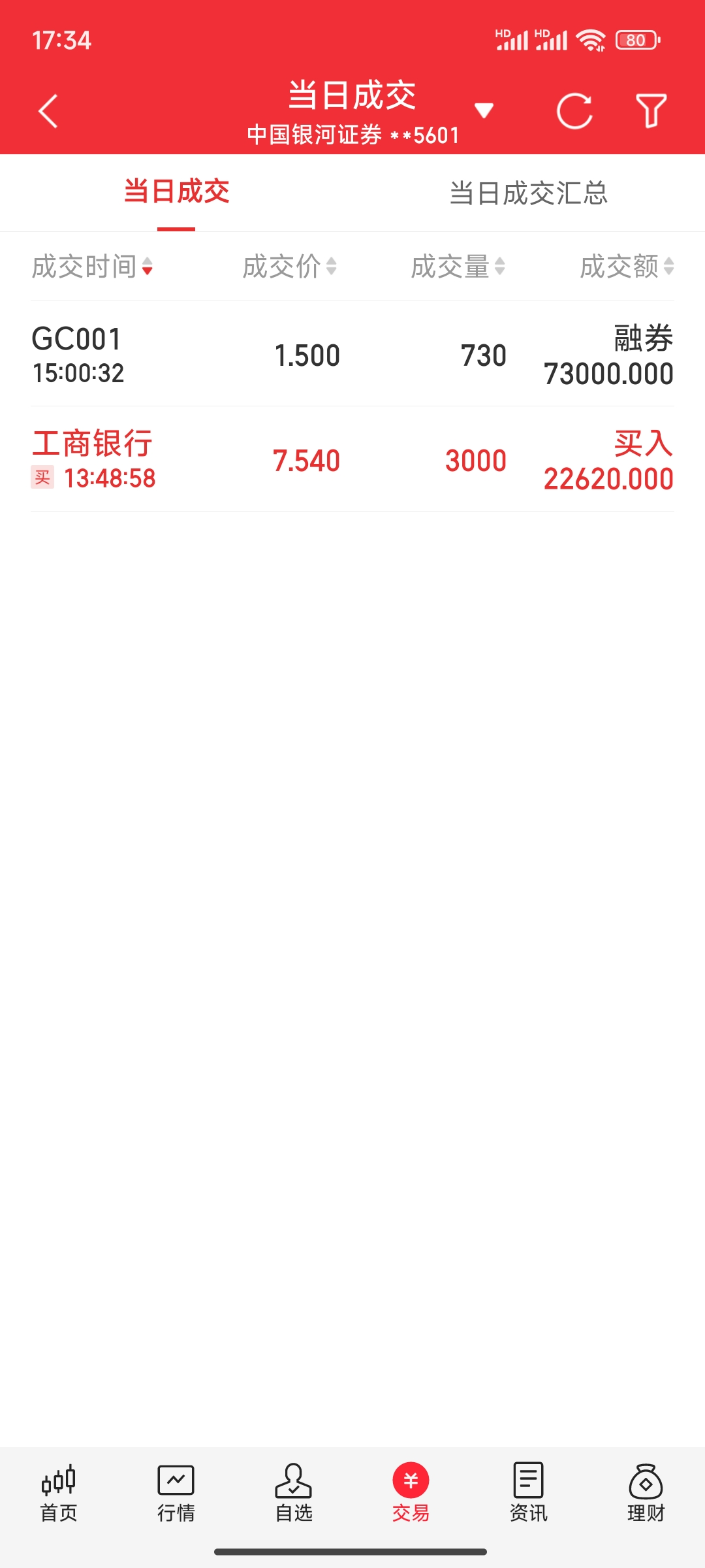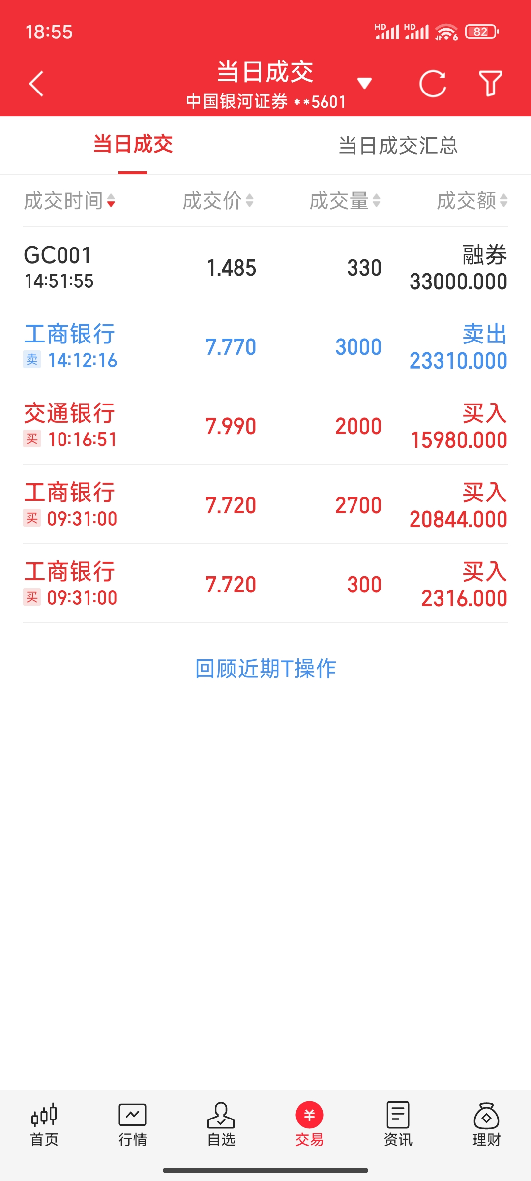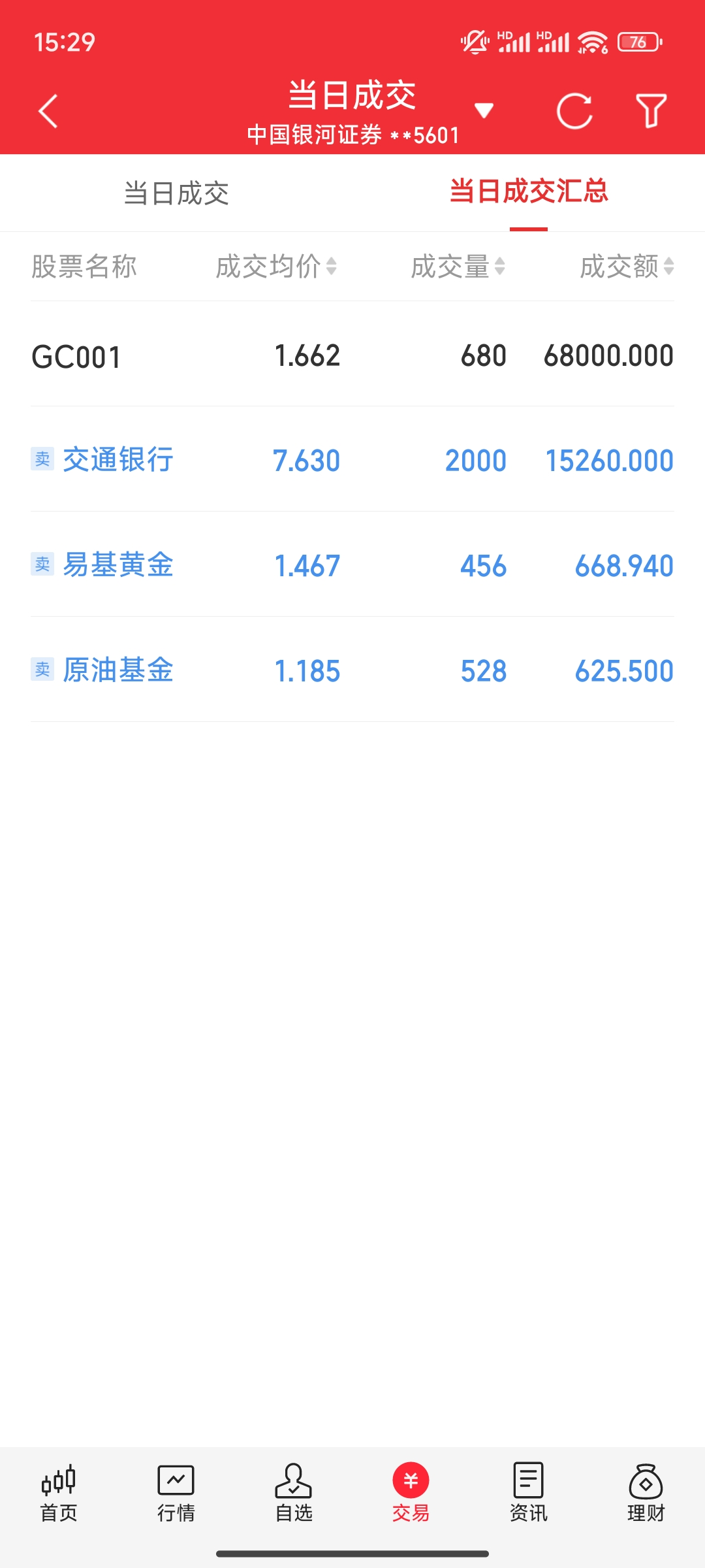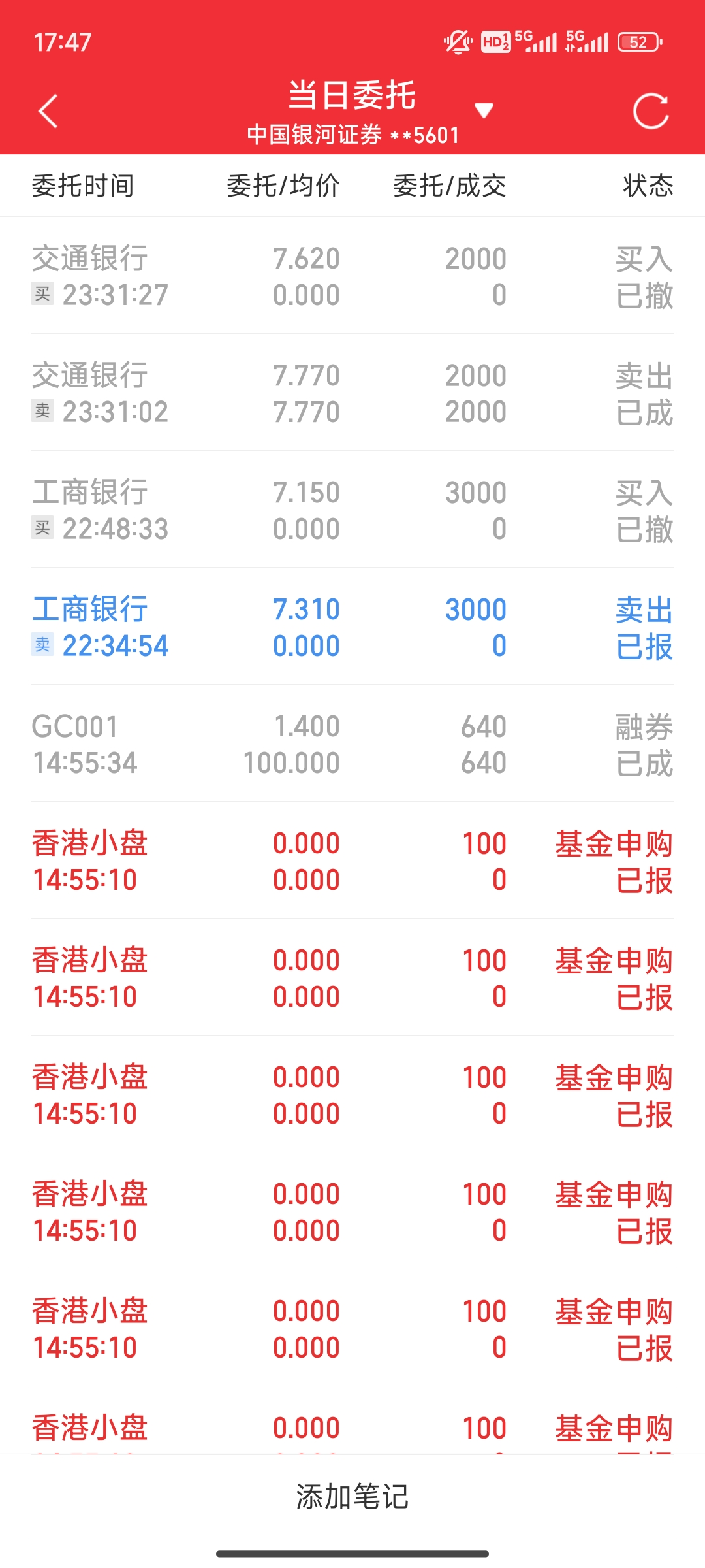 t挺多的,基本上是条件单自动成交的,然并卵。交行还是趴着