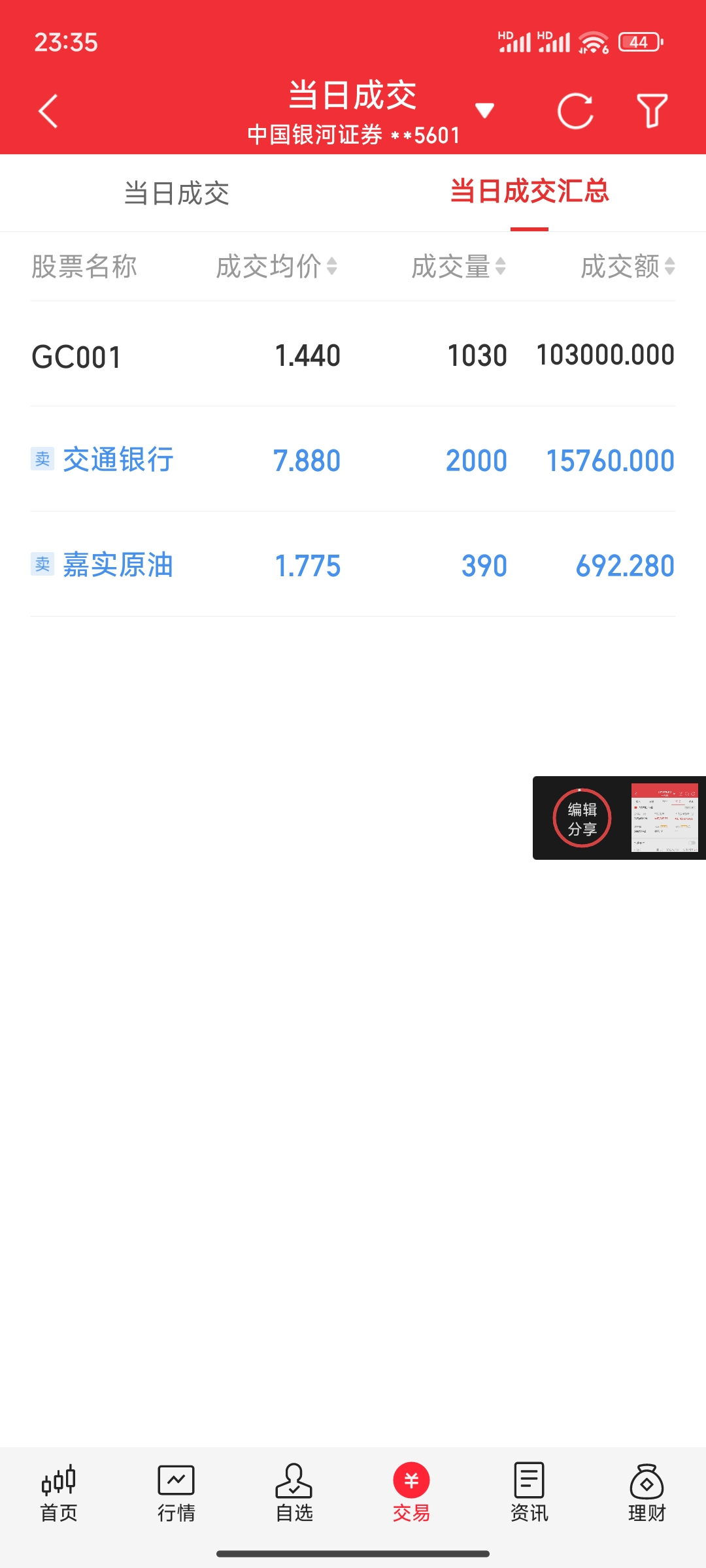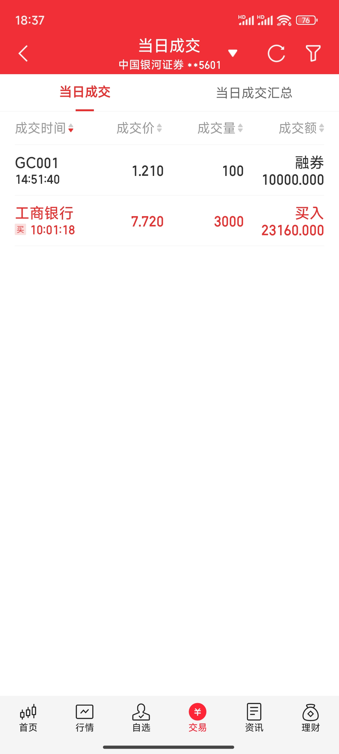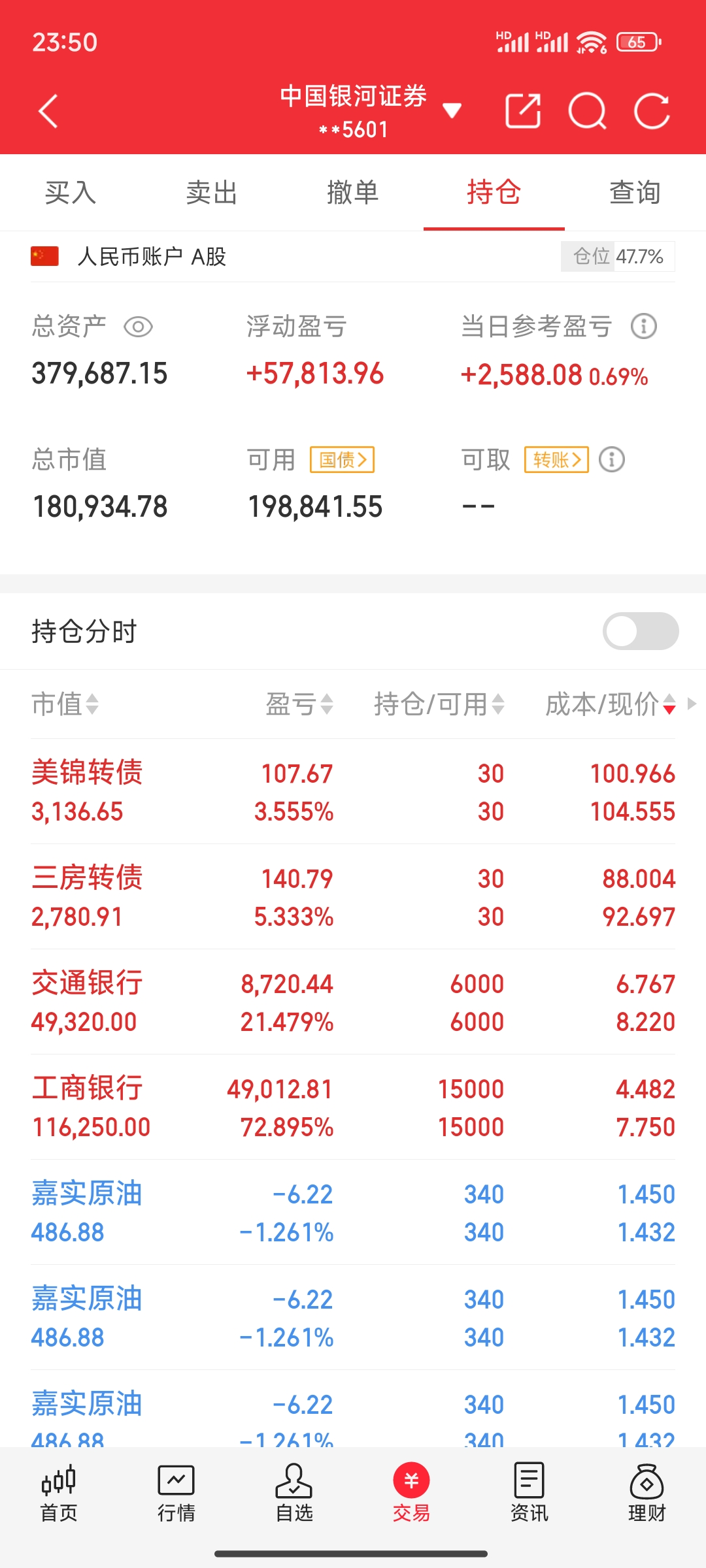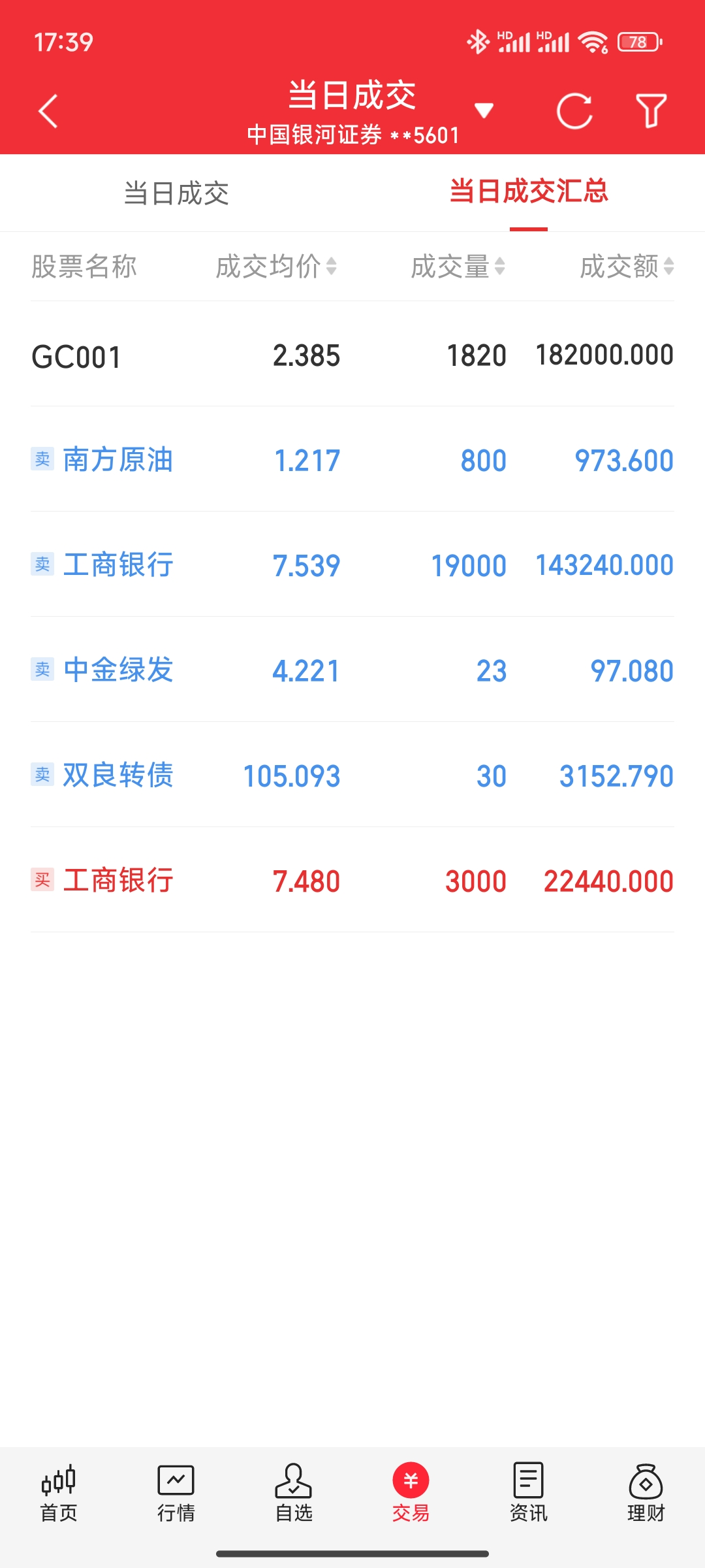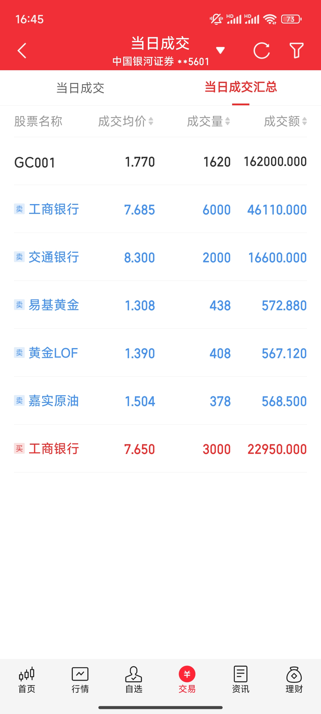 t挺多的,基本上是条件单自动成交的,然并卵。交行还是趴着