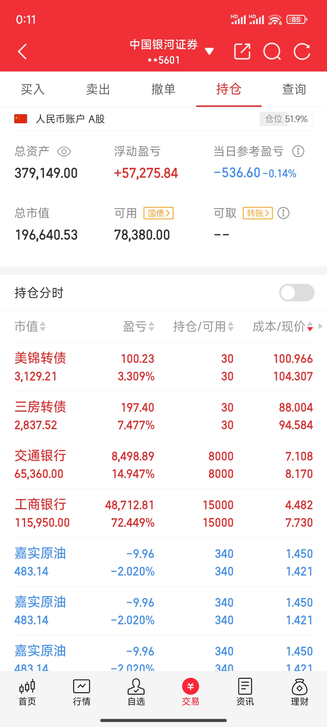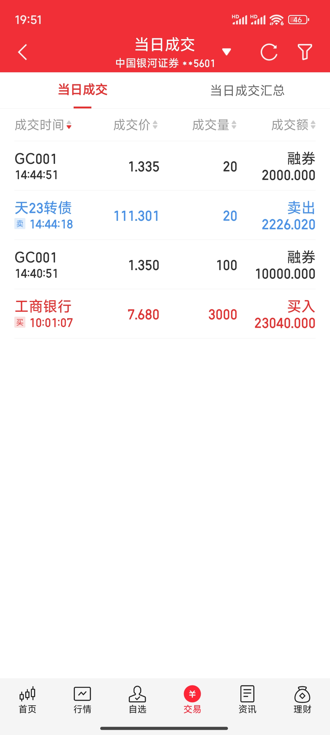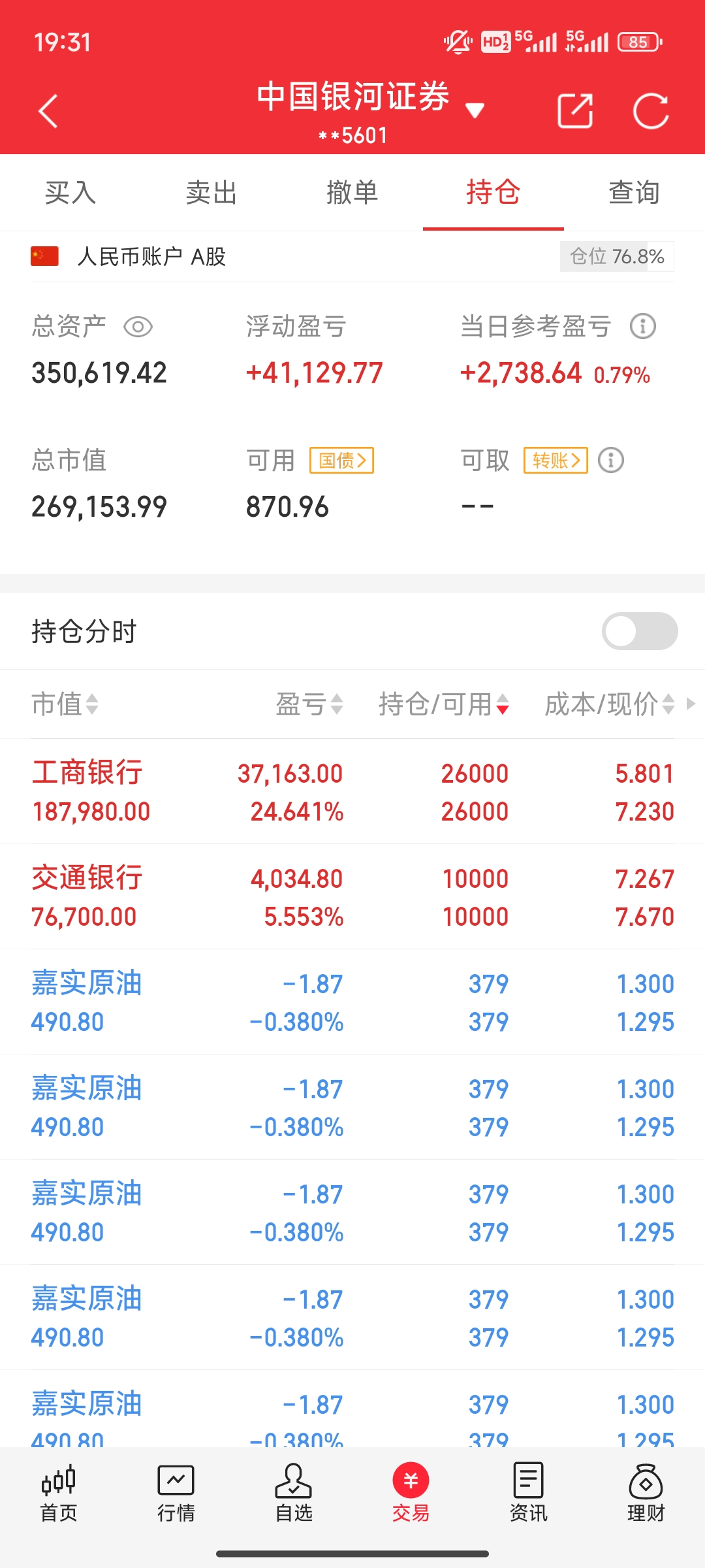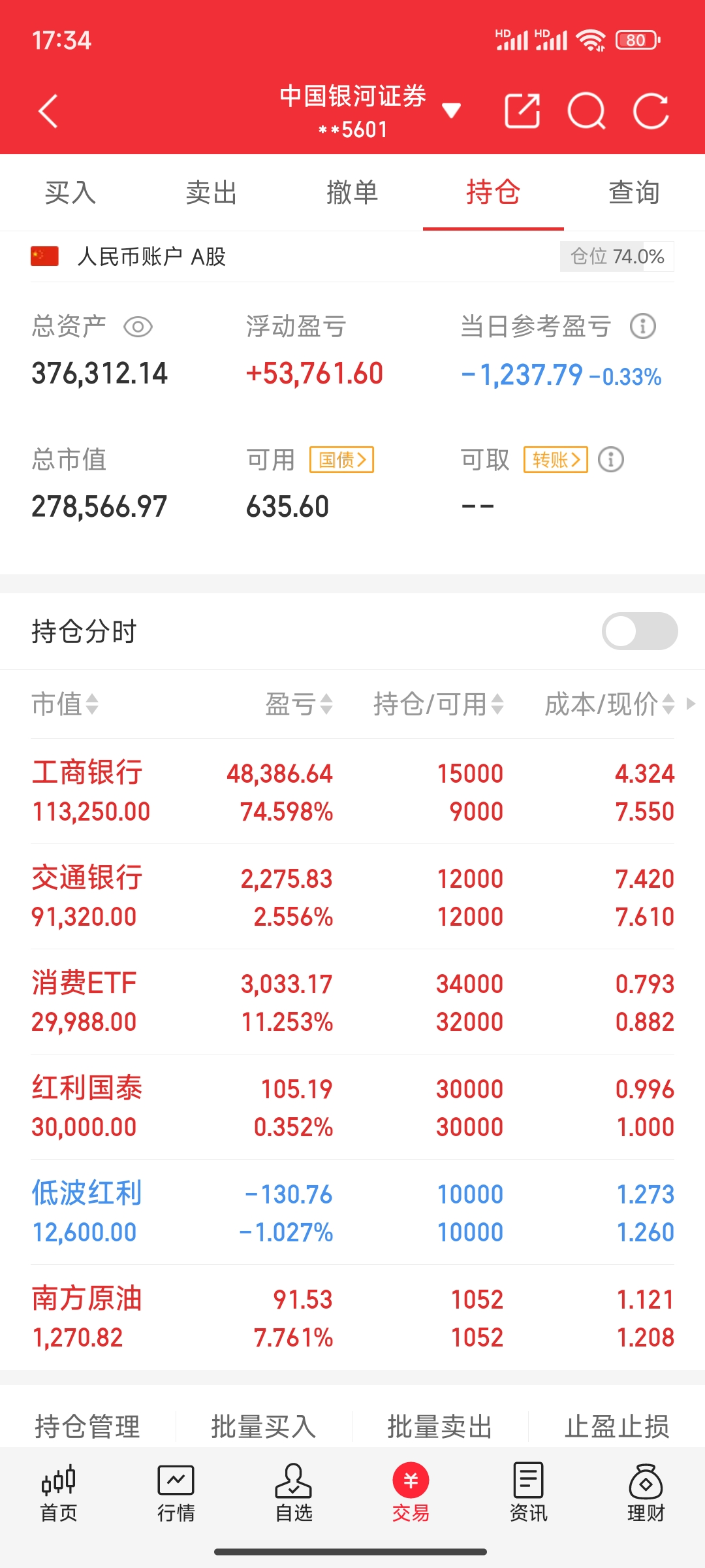 t挺多的,基本上是条件单自动成交的,然并卵。交行还是趴着