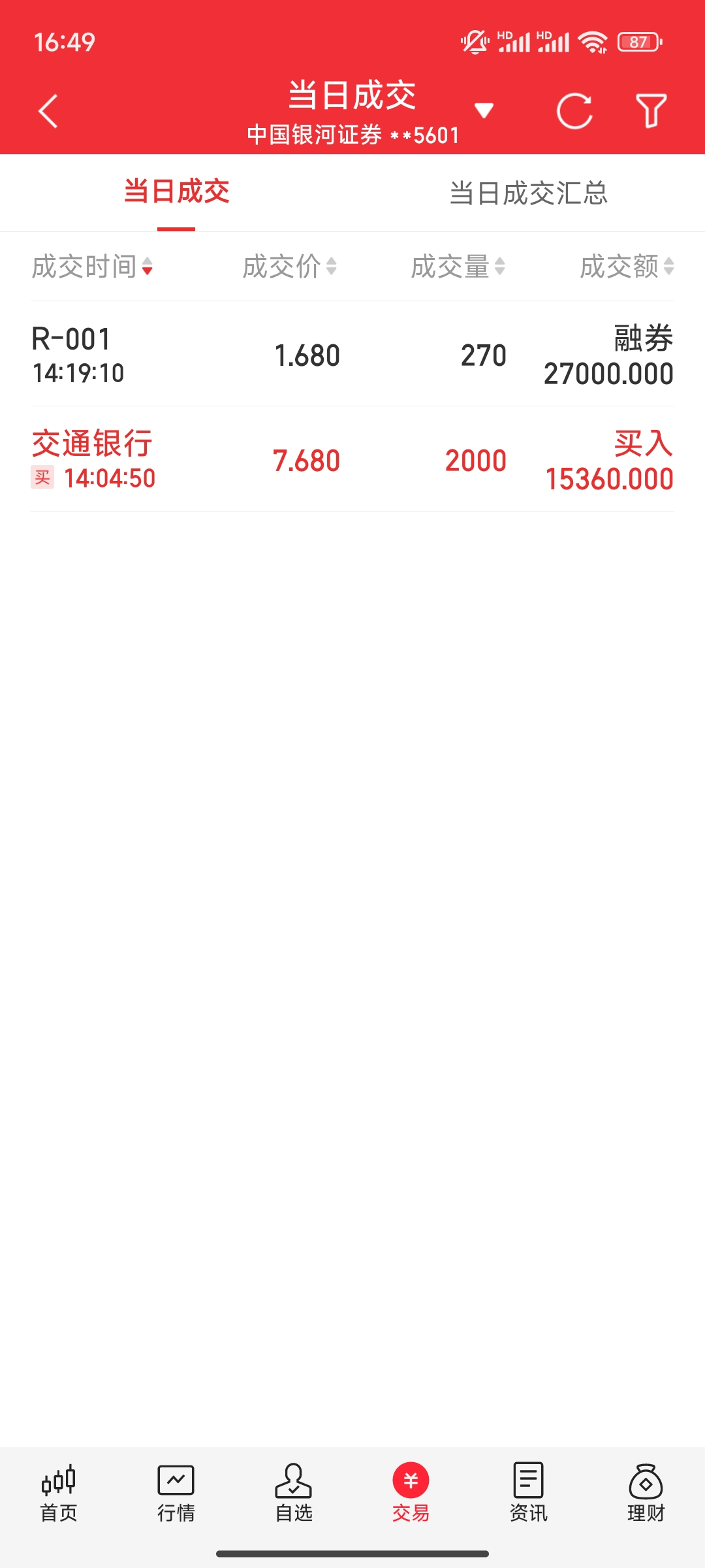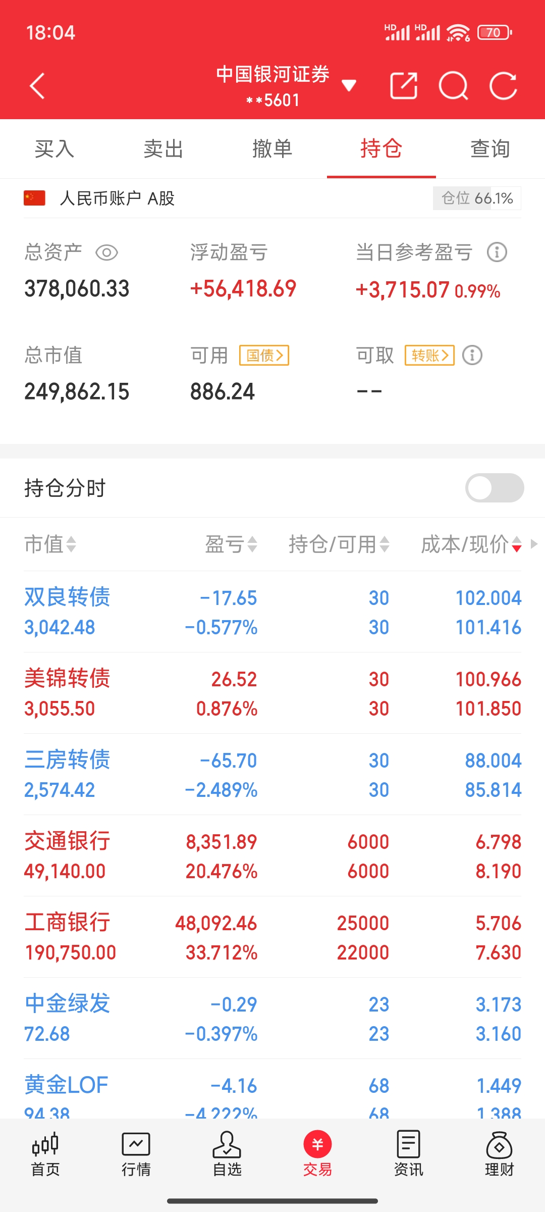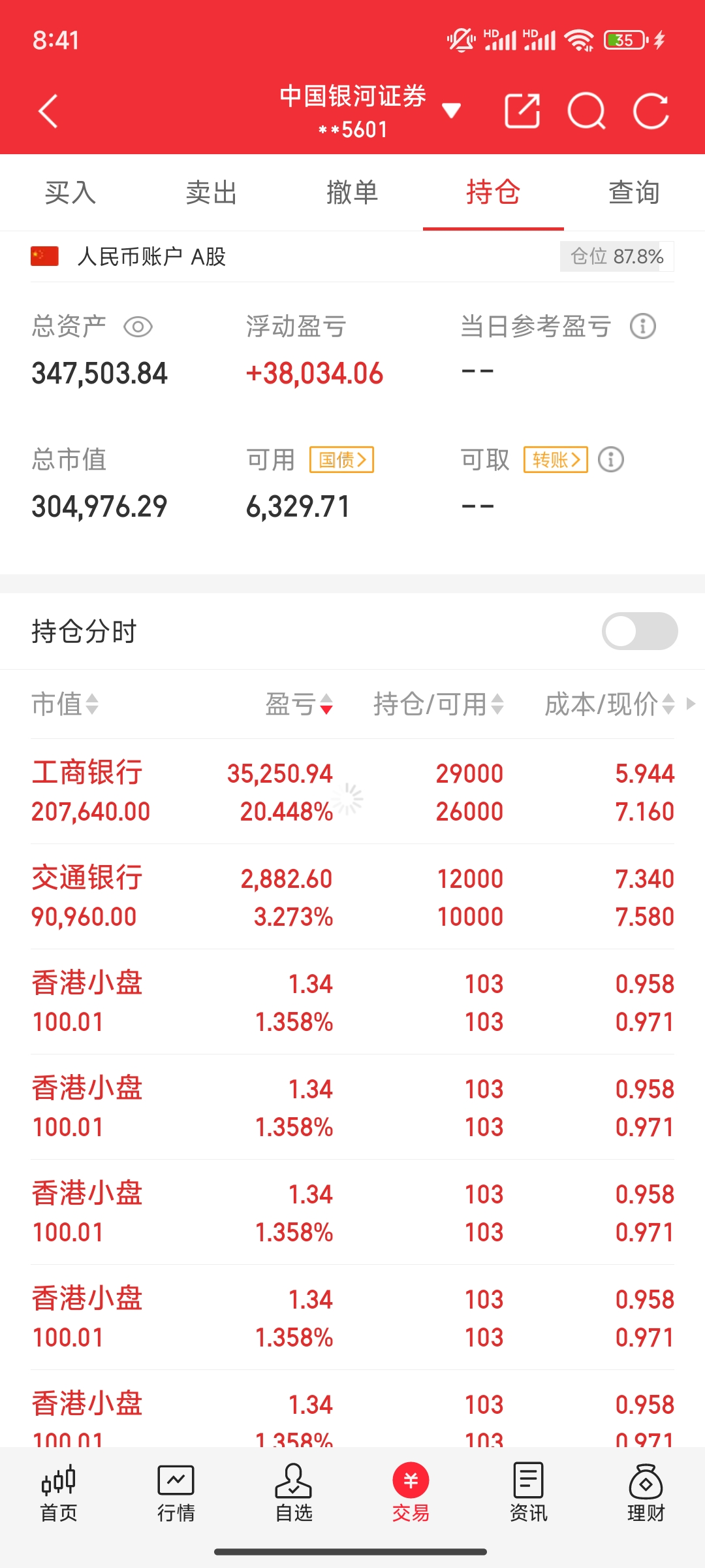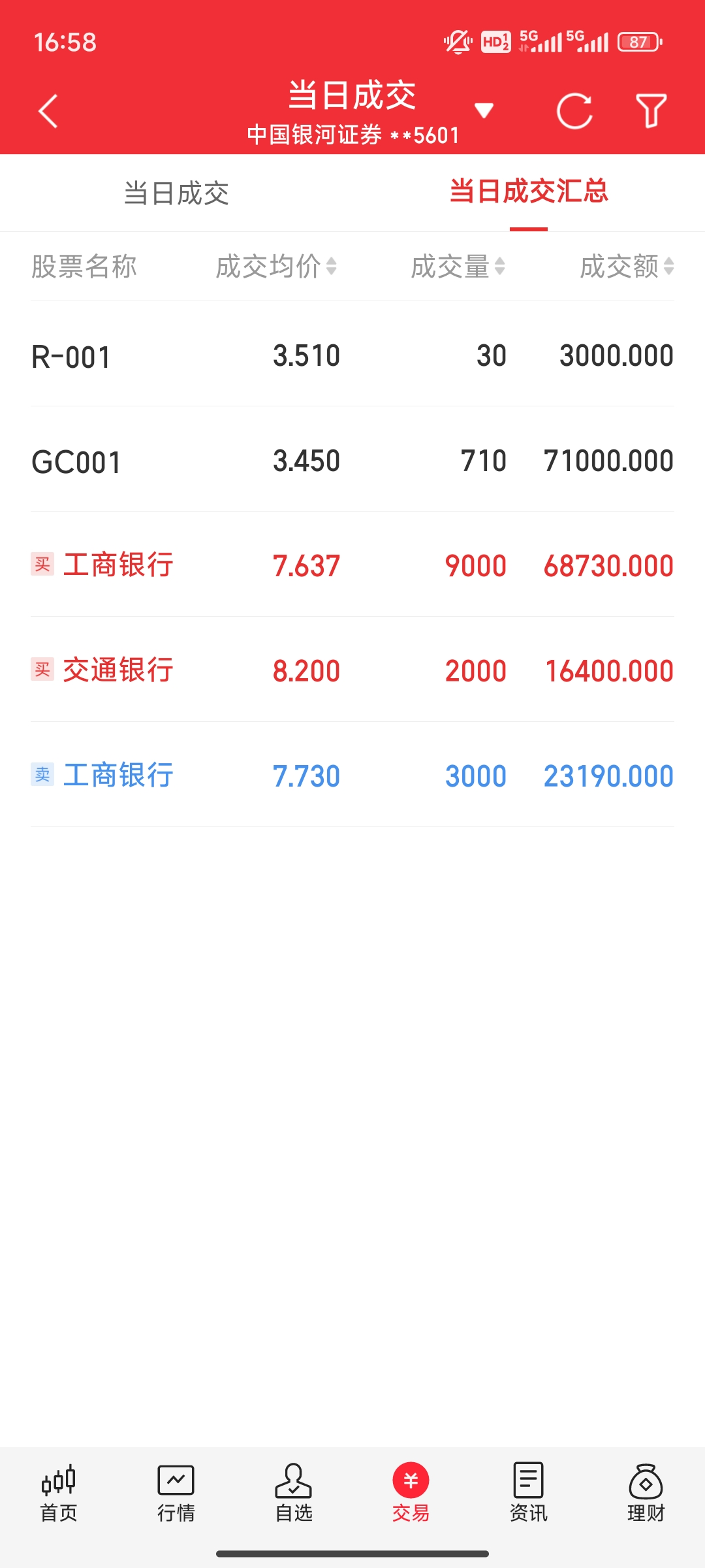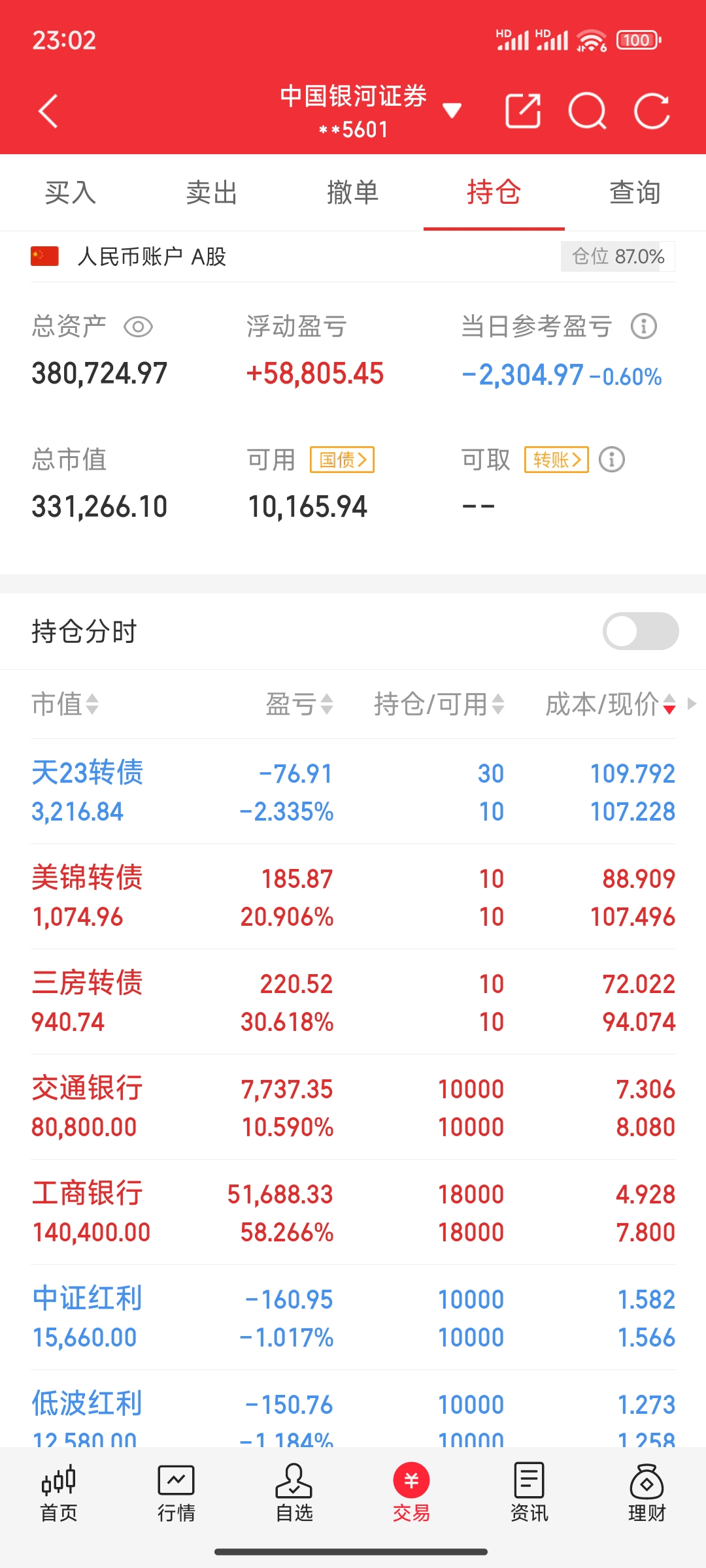 t挺多的,基本上是条件单自动成交的,然并卵。交行还是趴着