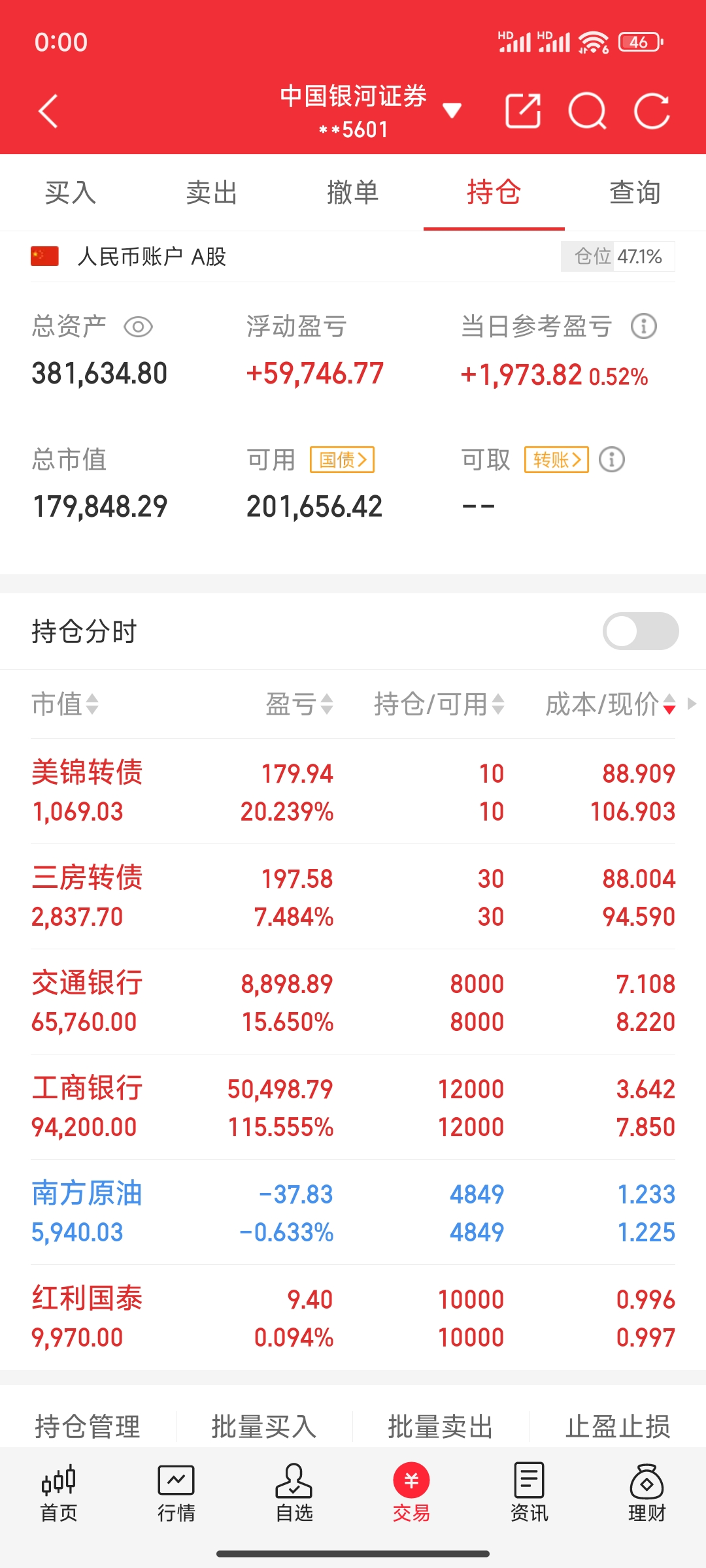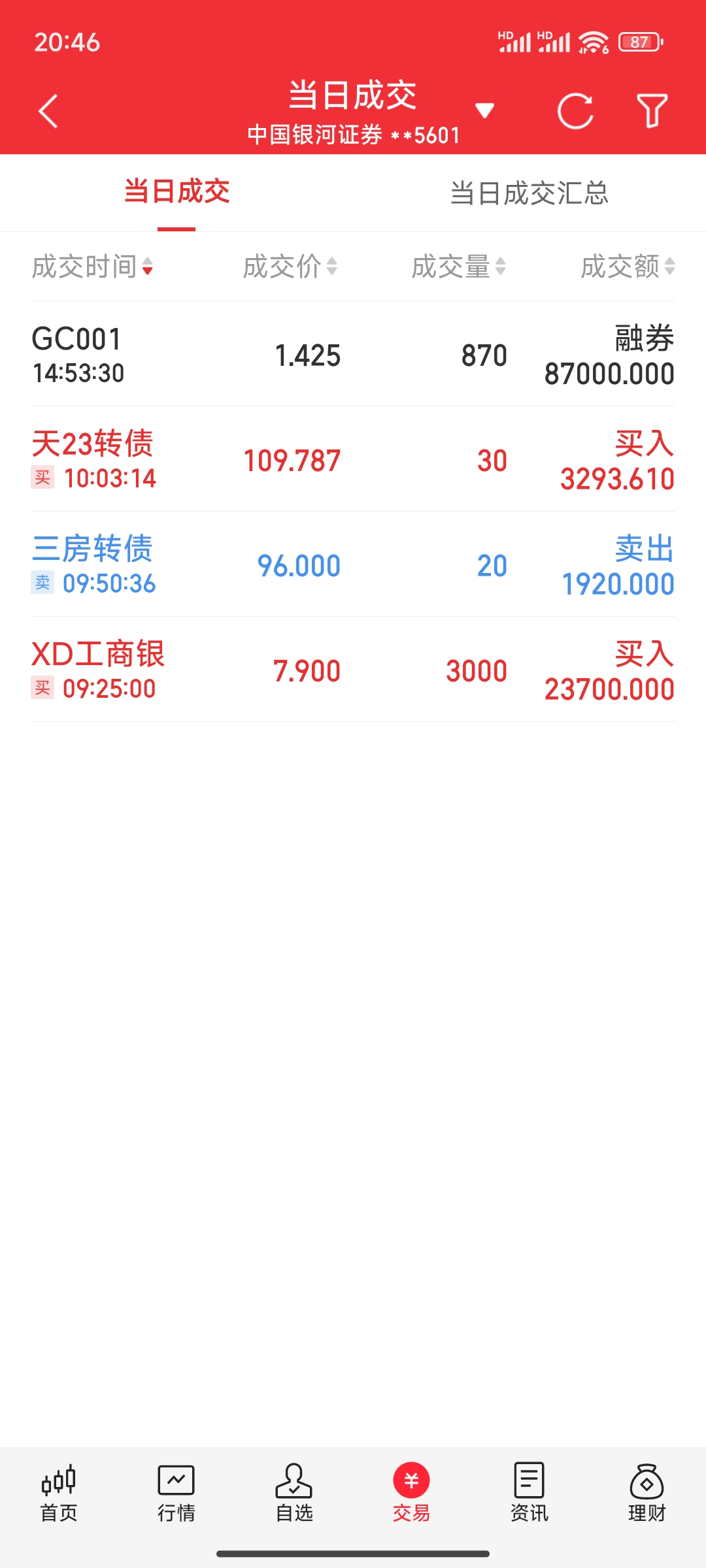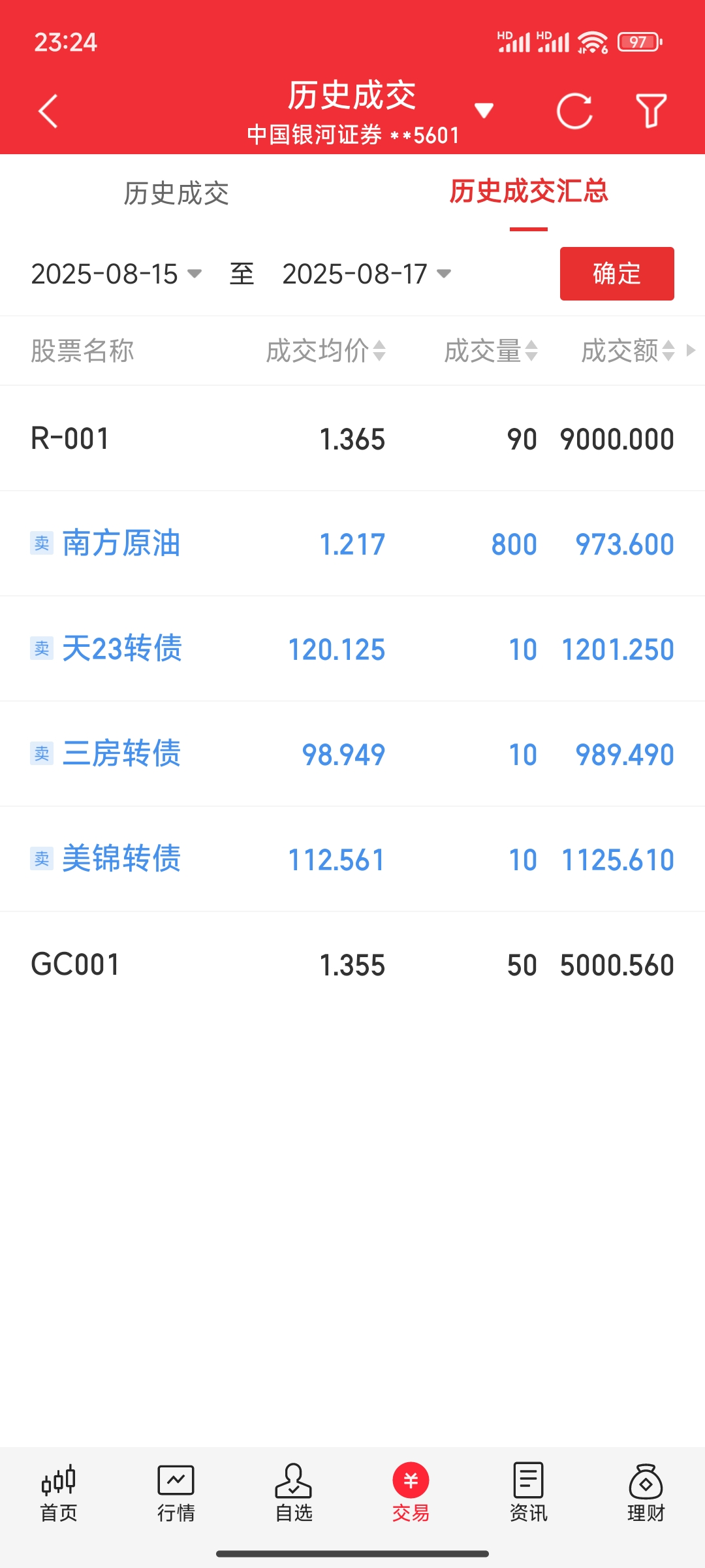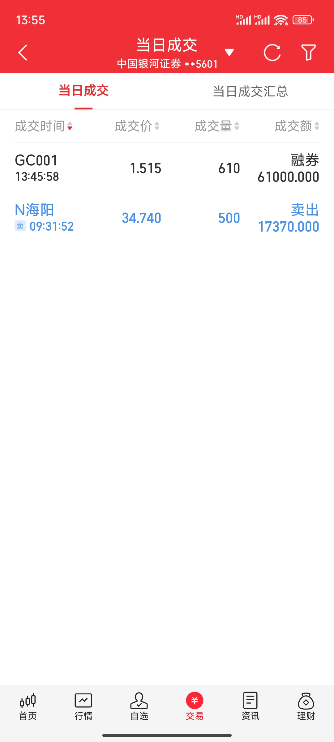 t挺多的,基本上是条件单自动成交的,然并卵。交行还是趴着