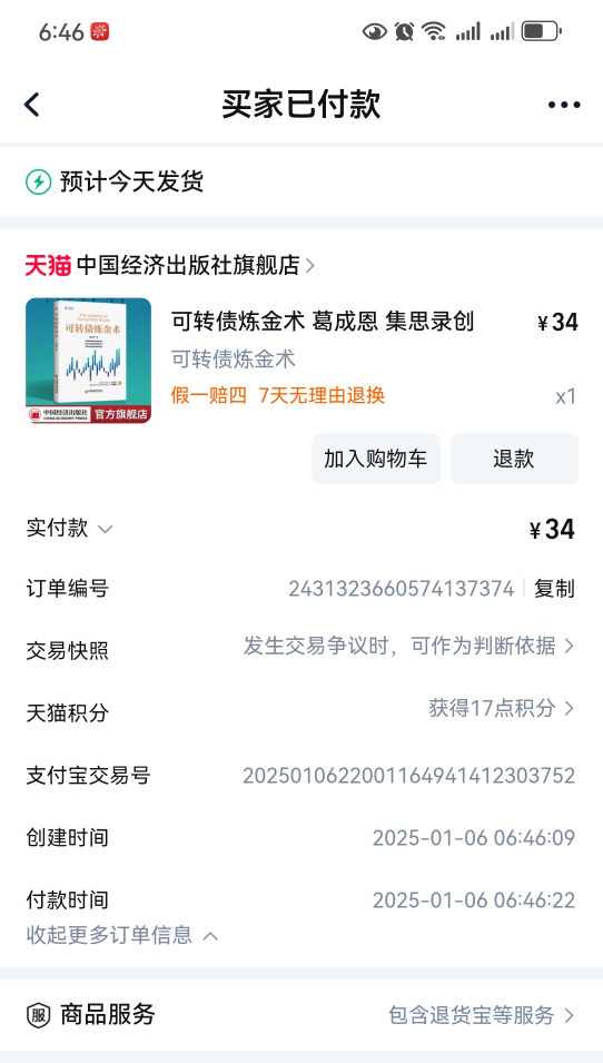 接龙 @打新交朋友 兄这个帖子(https://www.jisilu.cn/question/478696),我的著作《可转债炼金术》终于出版上市了,京东和天猫有售,下面是中国经济出版社提供的购买链接,五折包邮,每册仅需34元。