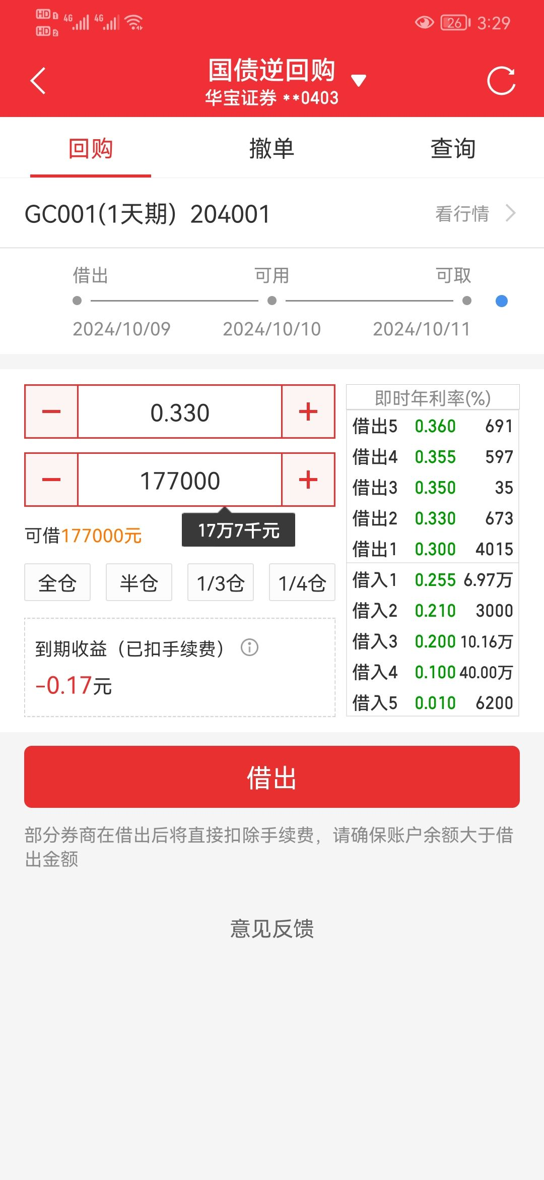 现在 回购利率 正常 只有 1.x 没人手续费 年华 0.36% 占比太大 。