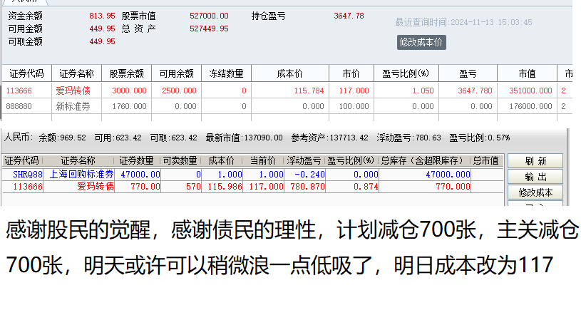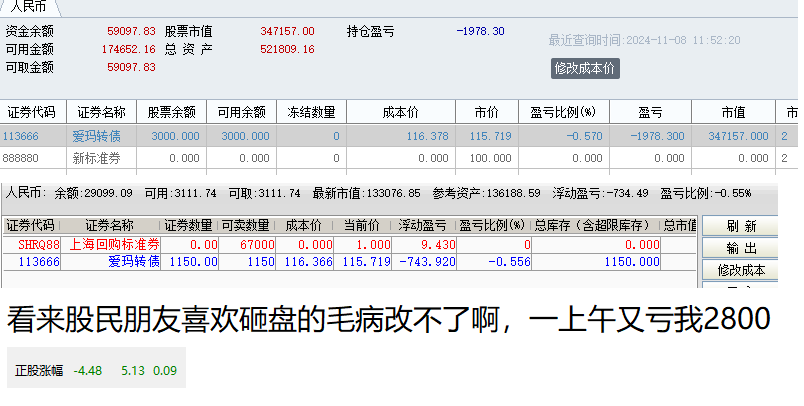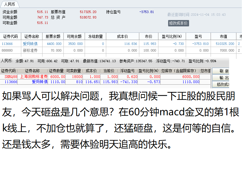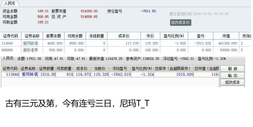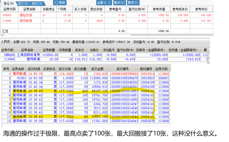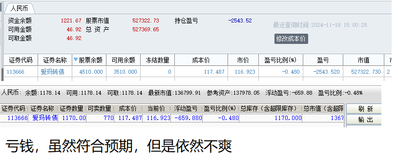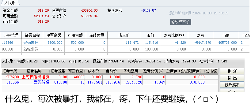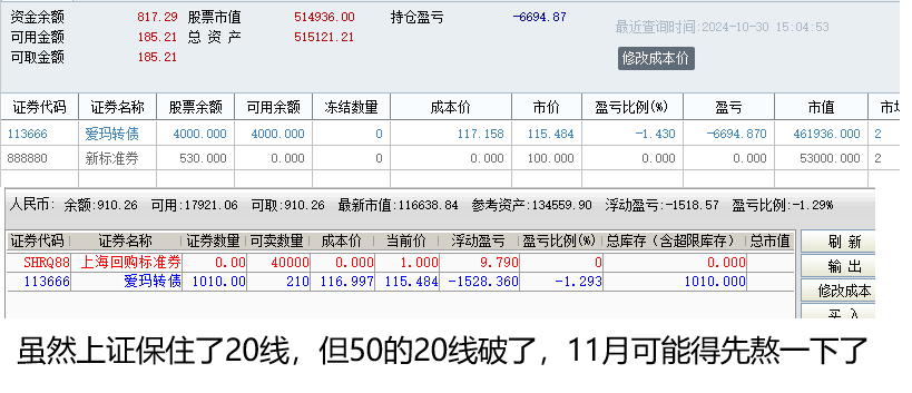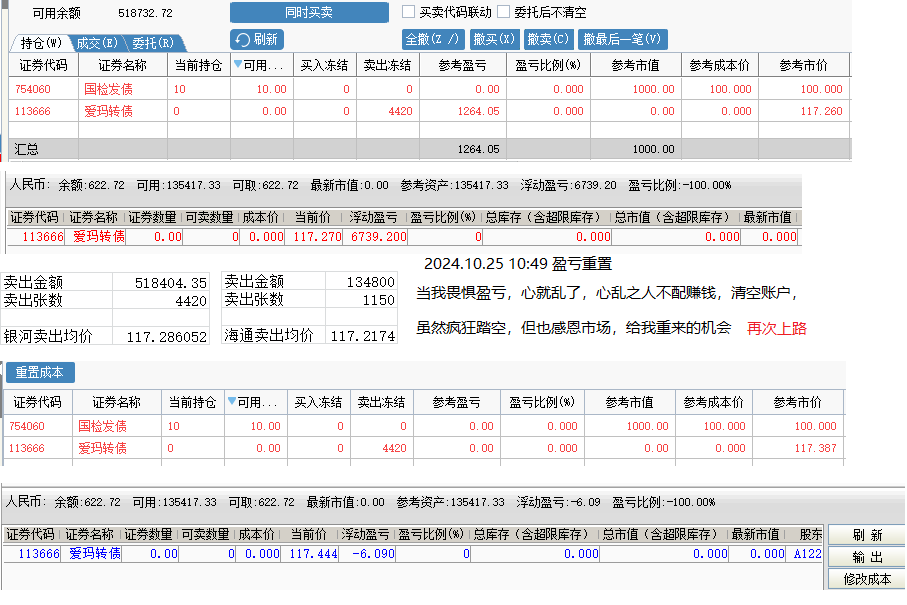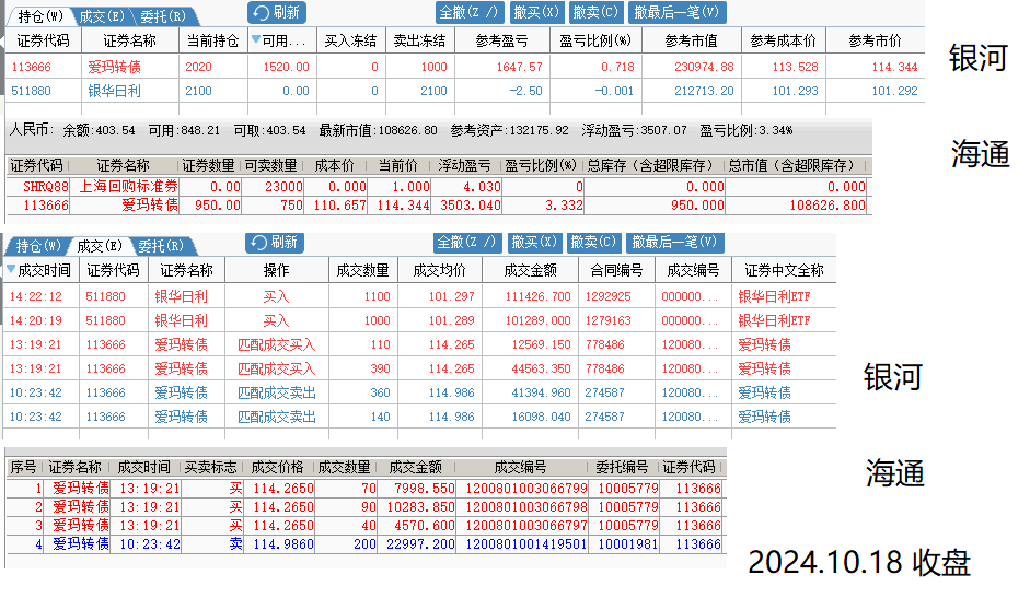 2024-10-18 中午收盘 卖出700张,另外银河回落800元,海通回落400元,离10月海通回本又远了一点
