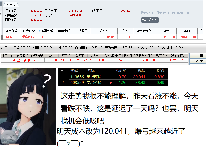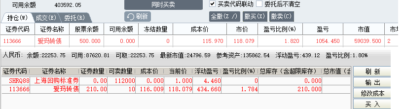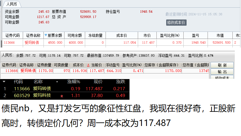 111.202 追涨买 爱玛转债(SH:113666) 套住了,看看需要多少天回本