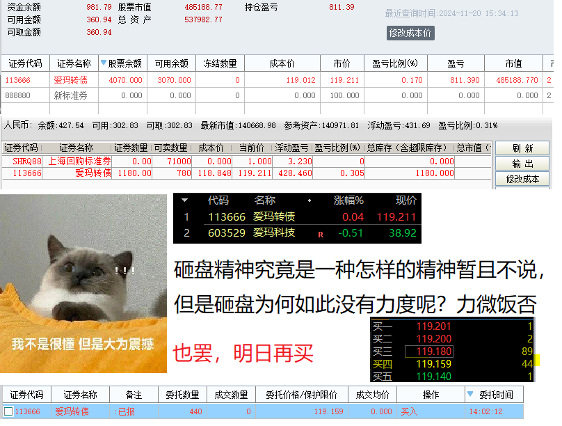 2024.11.21 昨日网络不佳,长江独立死了,触发委托全无效,海通通达信ip还挂了一个,五档取价直接崩