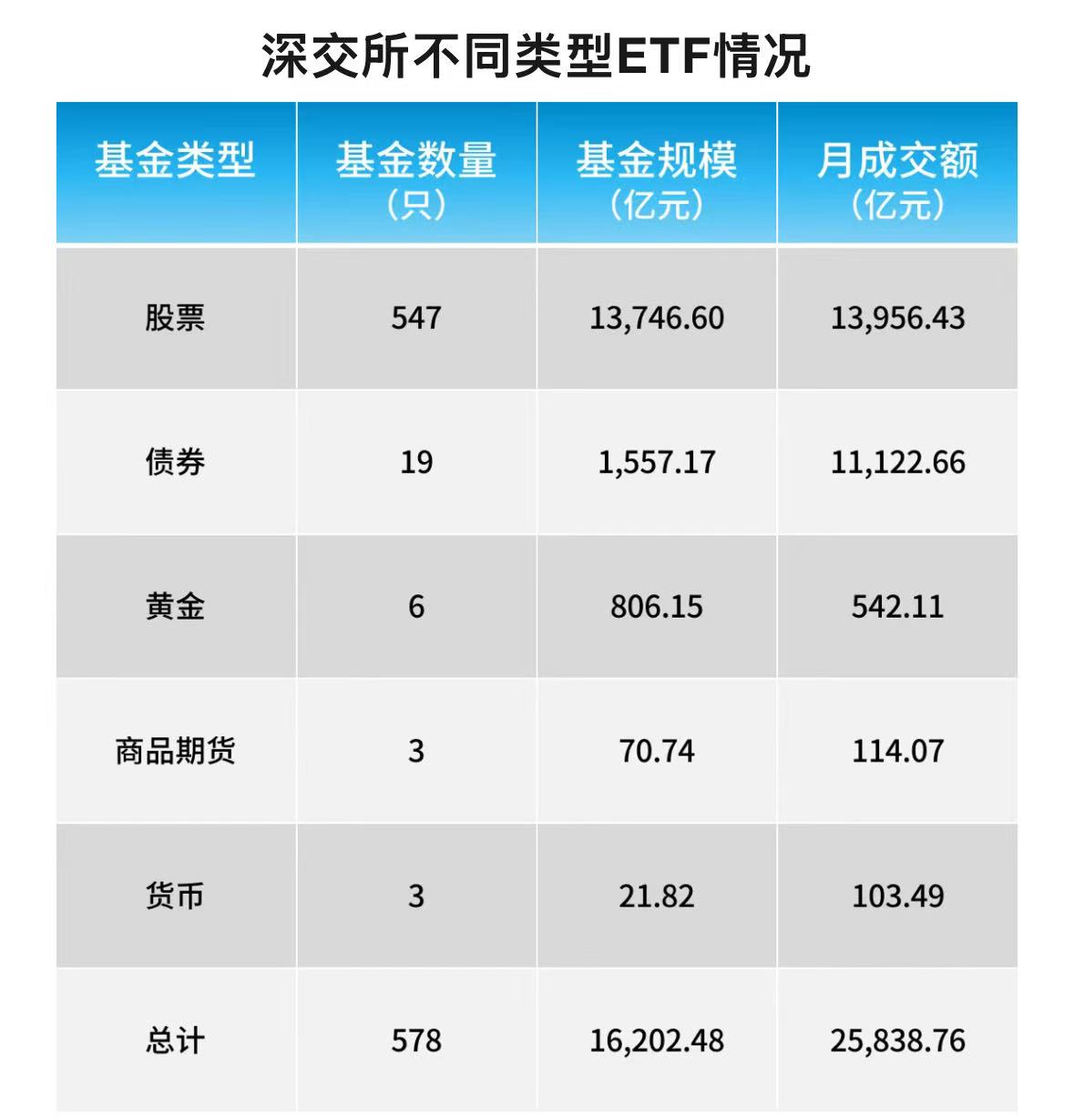 深交所本期净申购份额最大的3只ETF分别为人工智能ETF、港股通互联网ETF和黄金ETF基金,净申购份额分别为42.87亿份、37.53亿份和26.36亿份。