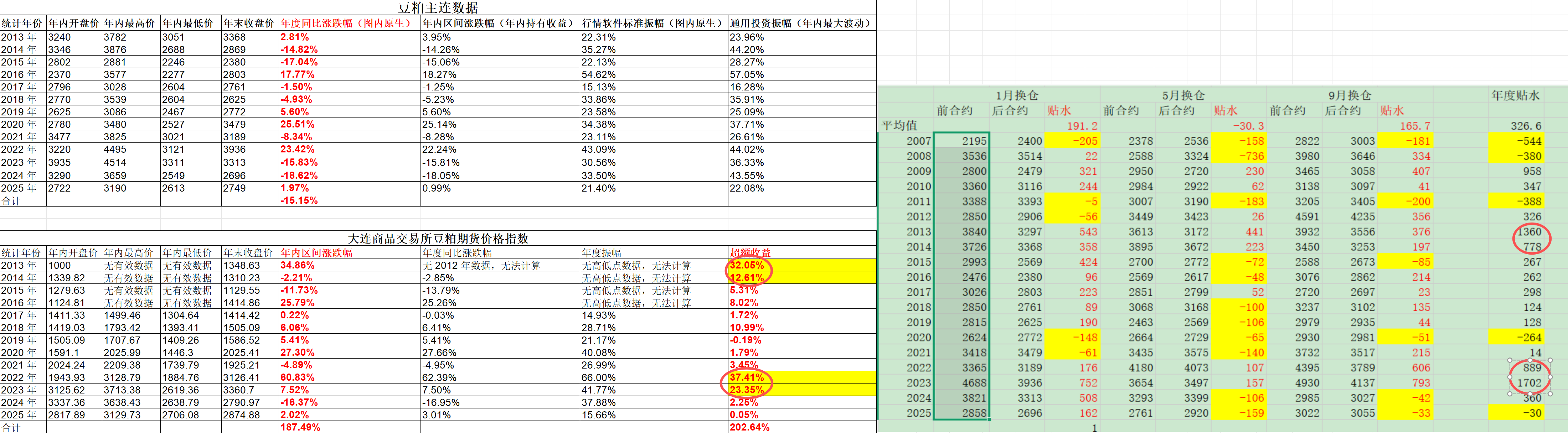 如果豆粕贴水是连续的,豆粕价格又在低位,那就太理想了。没有这么舒服的市场,没有这么好赚的钱。我的对策是算总账。全年下来,滚动是赚还是赔。