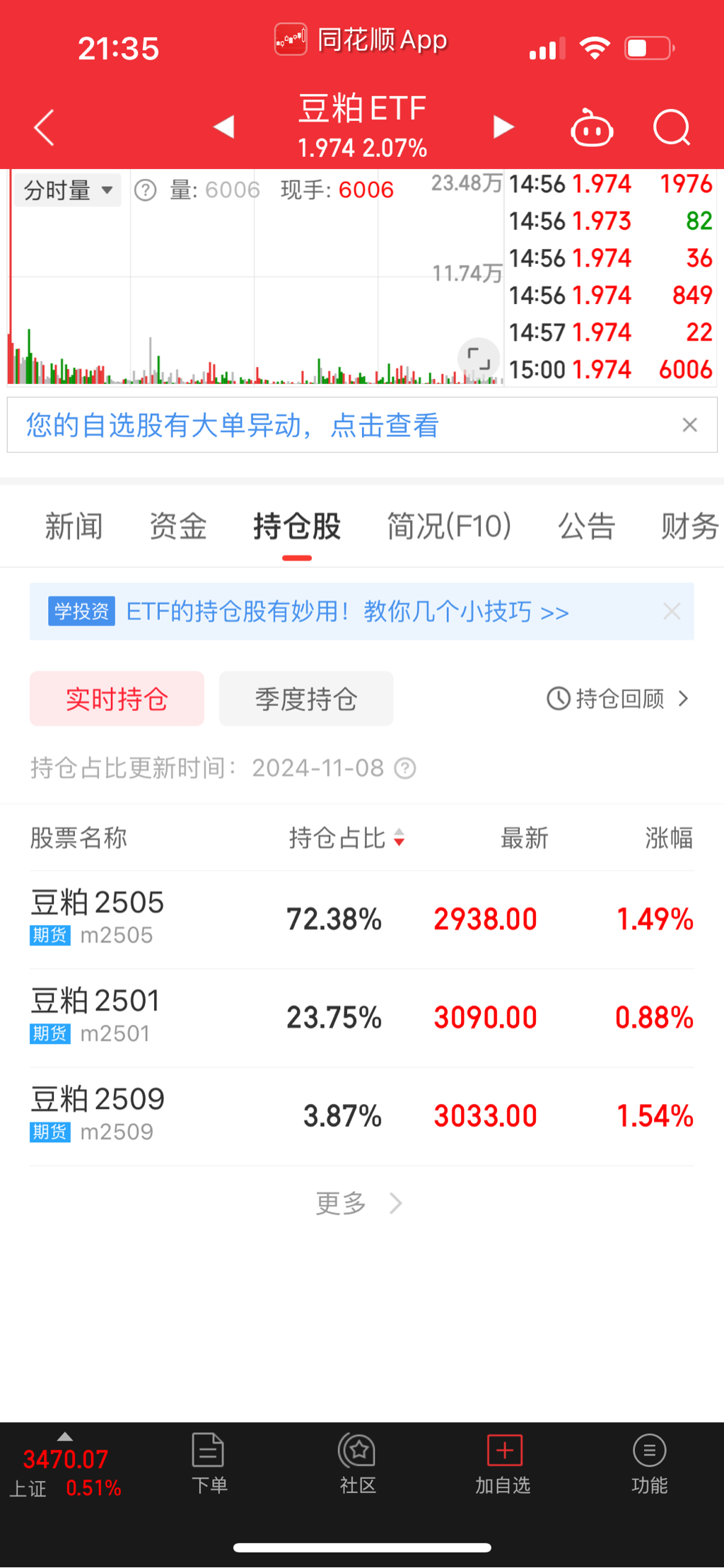 豆粕主连向下走,而豆粕ETF向上走,这是怎么回事呢?