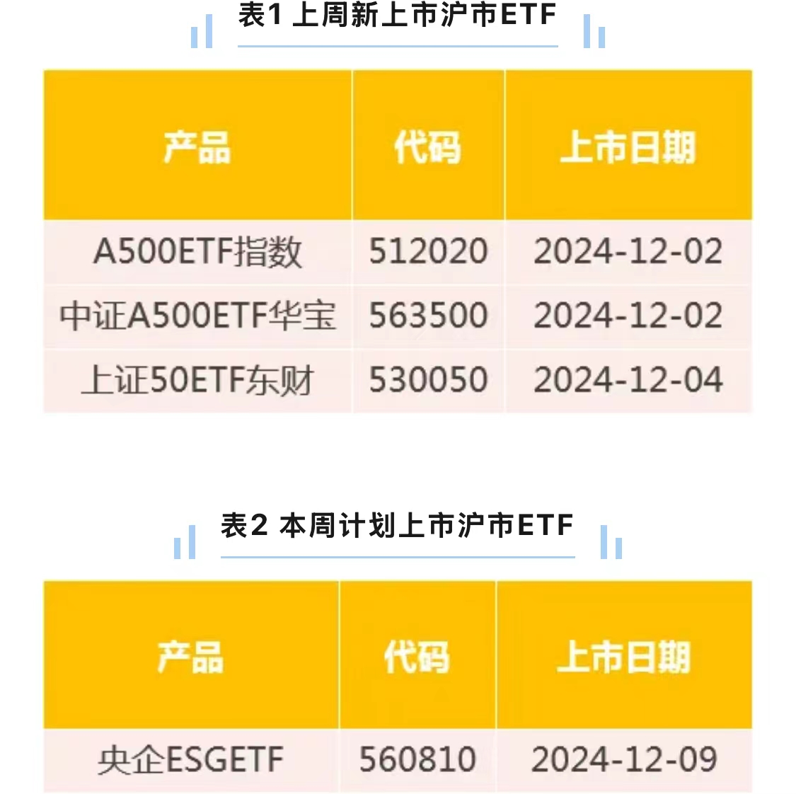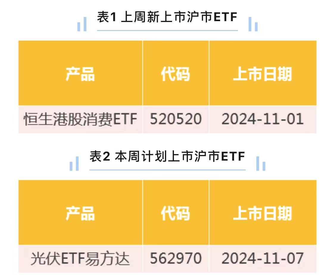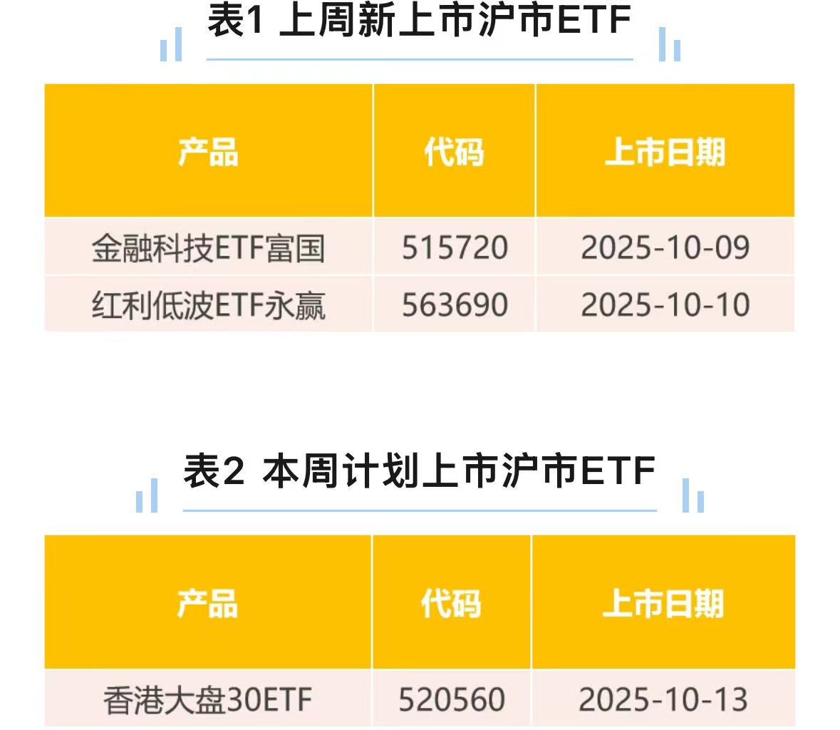 截至上一周末(2024年10月11日),上交所ETF市场共计挂牌580只ETF产品,上周新上市ETF产品1只,本周计划上市ETF产品7只。