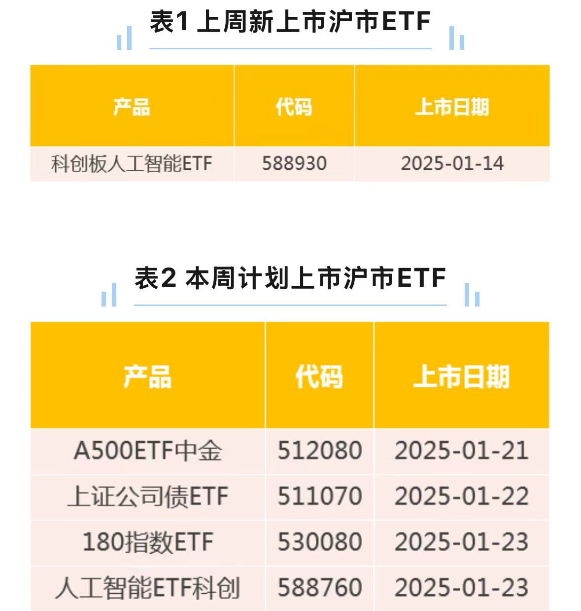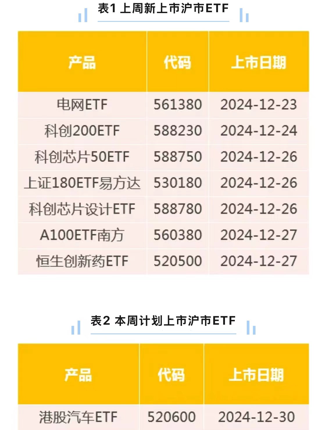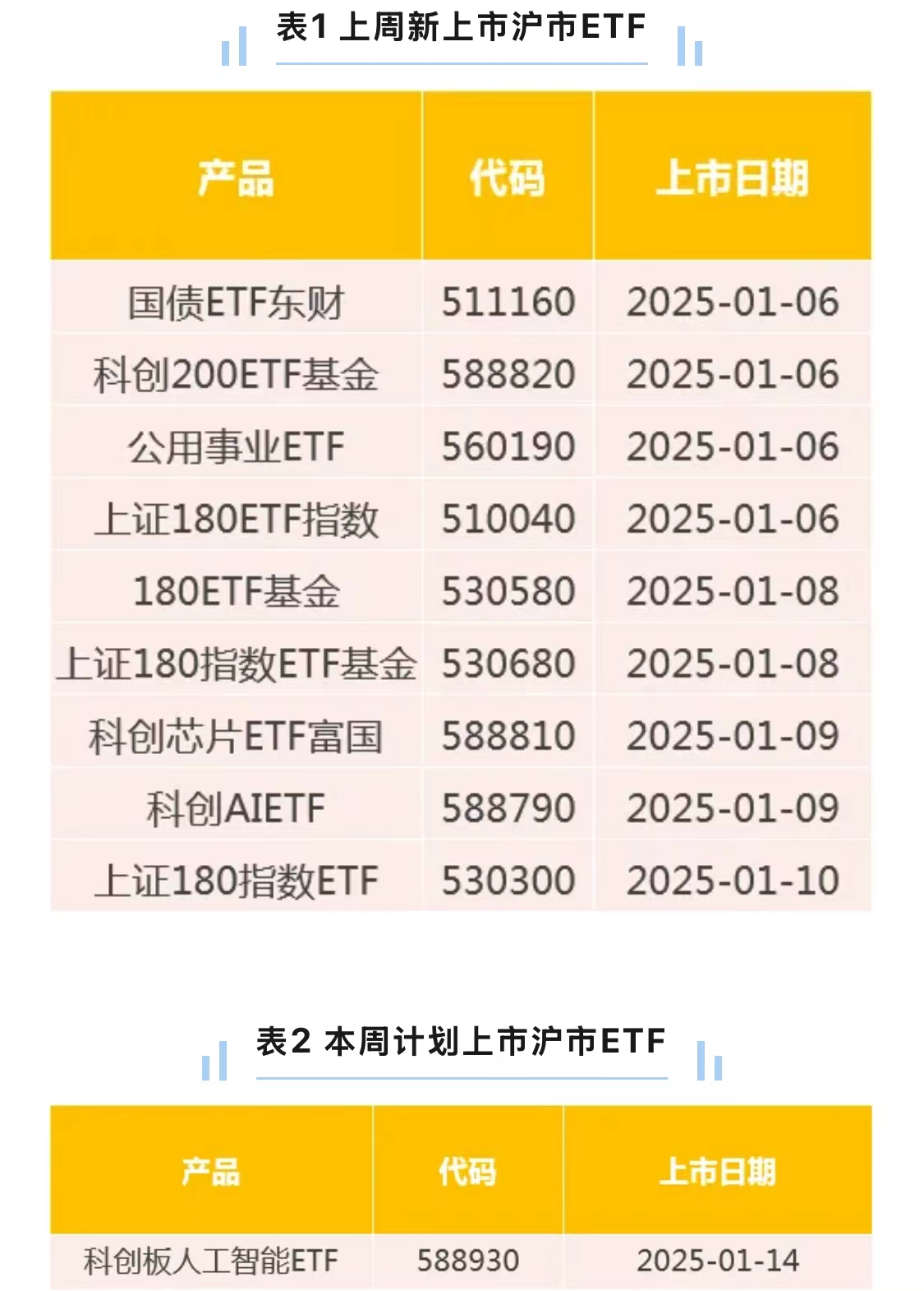 截至上一周末(2024年10月11日),上交所ETF市场共计挂牌580只ETF产品,上周新上市ETF产品1只,本周计划上市ETF产品7只。