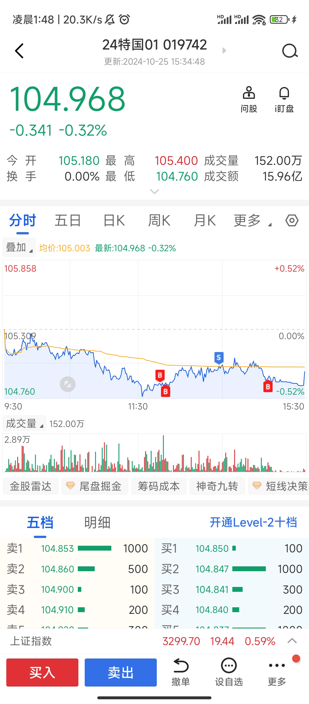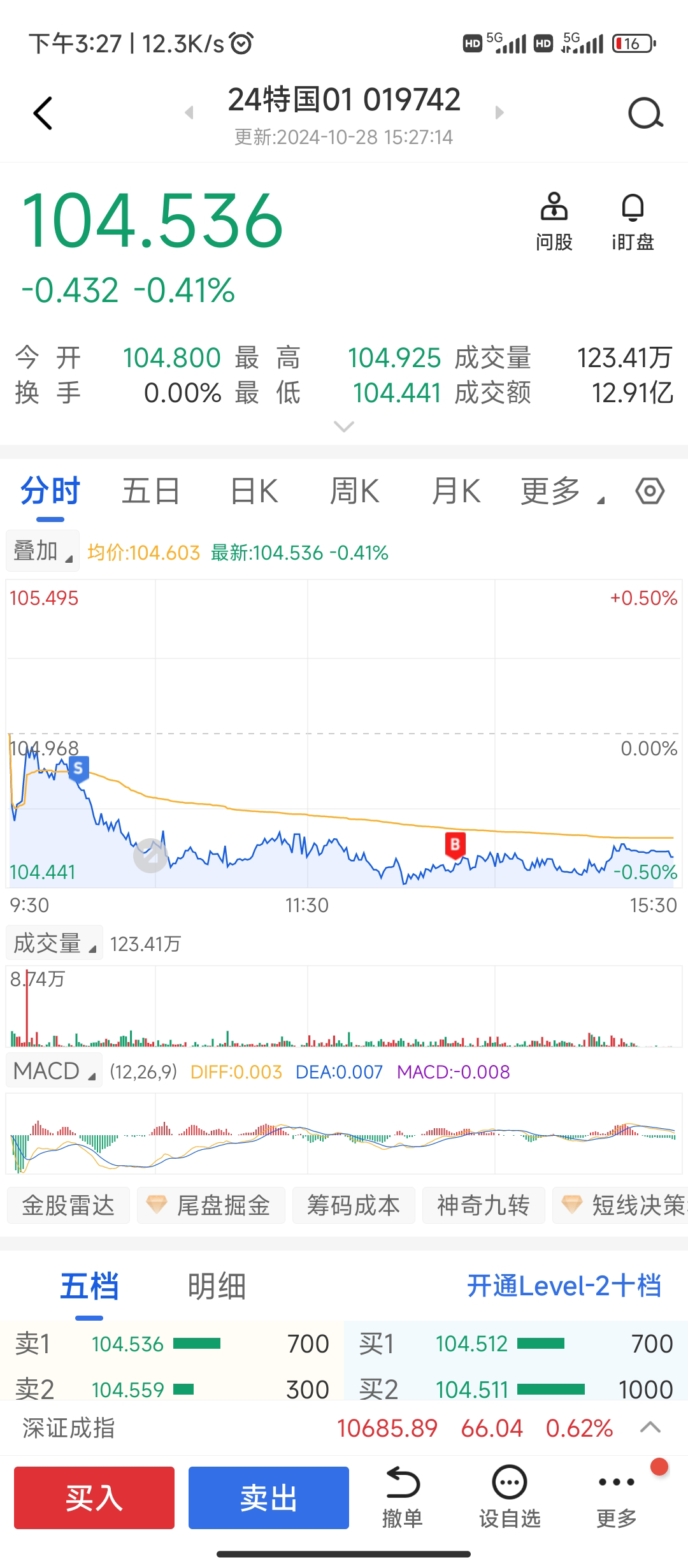 你既然已经满仓国债,楼主把价格打到105你不是满仓被套?@daimozs满仓国债,静待楼主把价格打到105。毕竟不多跌点只靠做T赚的太少,不够塞牙缝的。