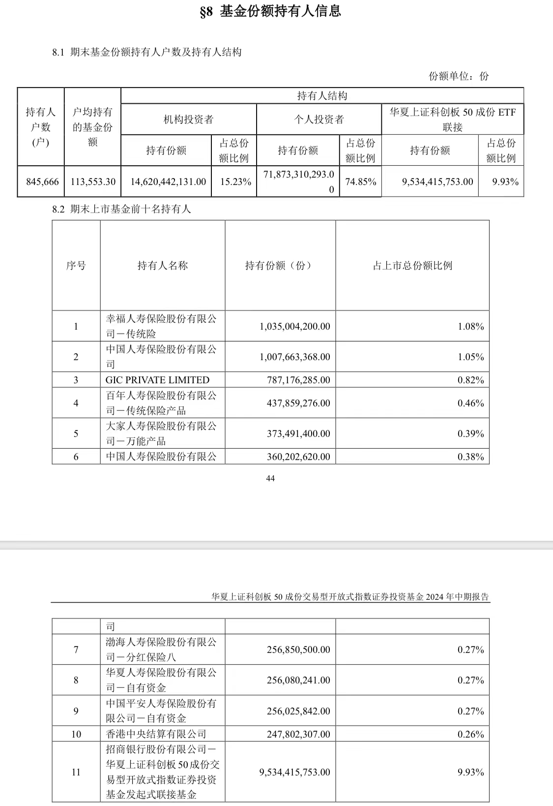 2024年6月末,中个人投资者持有科创50ETF份额占比近85%。