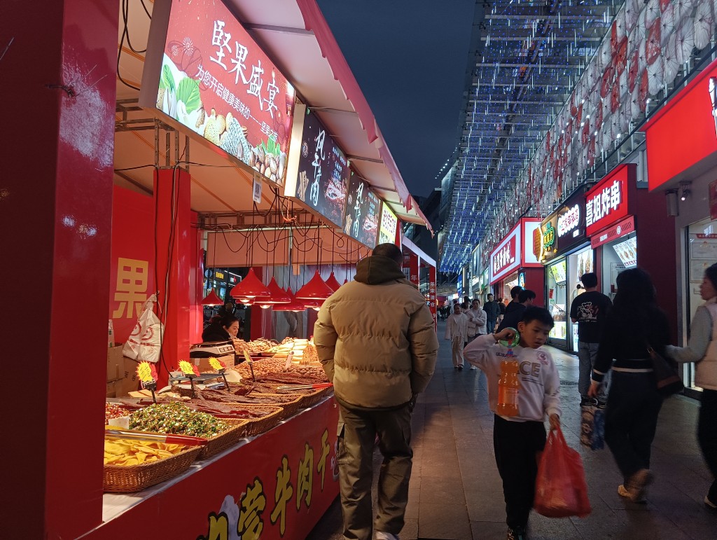 暮色漫过东江时,水东街的灯笼次第亮起,像悬在檐角的糖葫芦。钵钵鸡的竹签在红油里沉浮,老板娘麻利地撒着芝麻,辣香勾得游人驻足。徜徉在明亮闪烁的霓虹灯光间,突然明白午夜为啥仍有鱼贯而入的游人——这座城把白日的筋骨都泡进了夜色,此刻才是它舒展好时分。