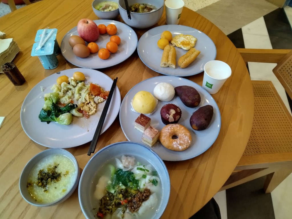 逛水东街吃了钵钵鸡串串,我不大感兴趣,随便对付几口!在进西湖公园门口买了一袋面包,凑乎吃吧!