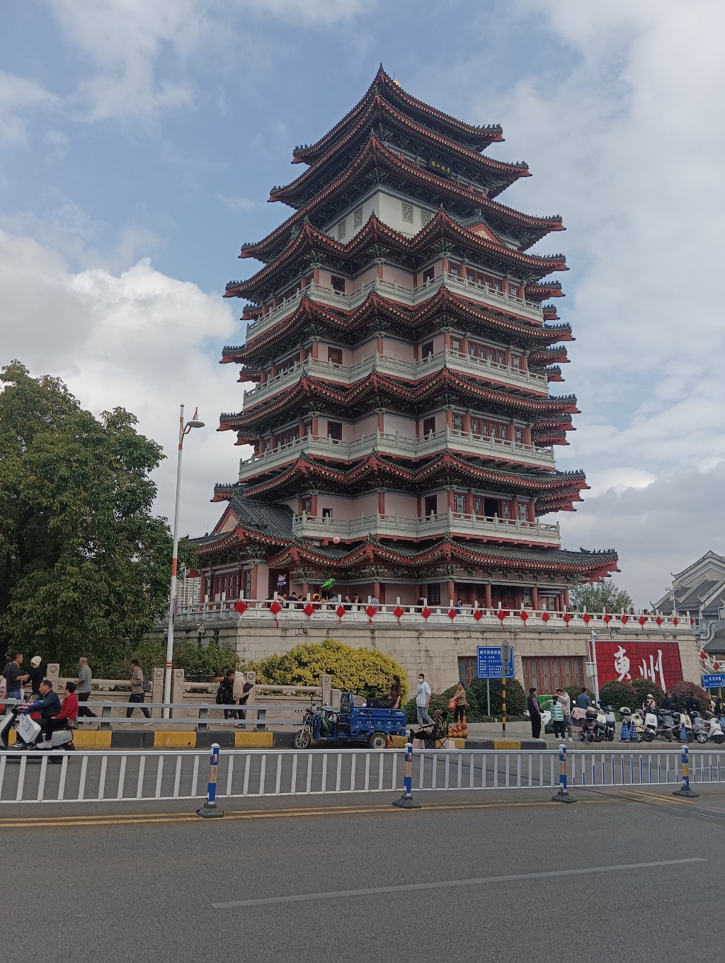 水东街街道纵横交错,虽狭小但很规整!近处,清末民初的骑楼静静伫立,墙体虽斑驳却难掩往昔商贸的辉煌;稍远处,始建于宋朝因战火而毁坏的合江楼、新中国后原址复建三层变八层更加雄壮!适逢假日,人流不息;本就拥挤的街面中间又硬生生多出一排临时小吃百货摊,人们穿梭其中,美食香气萦绕,很有人间烟火气!